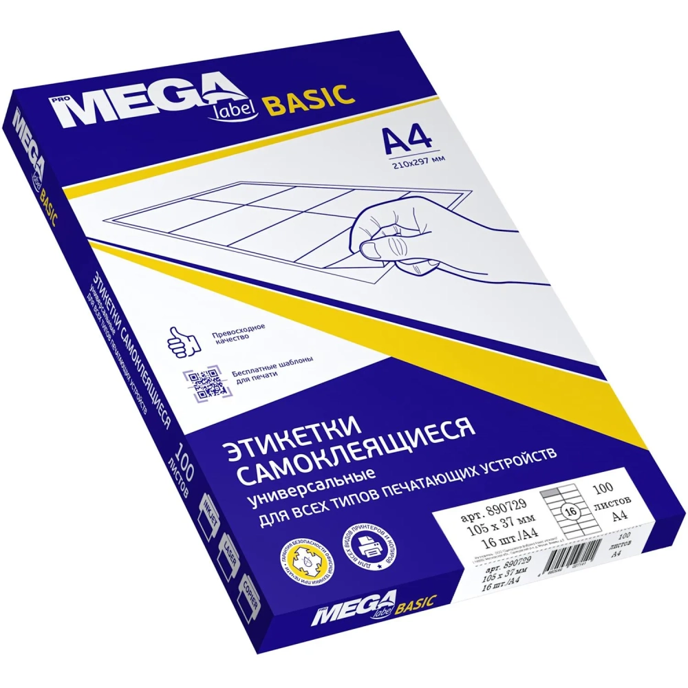 Этикетки самоклеящиеся 105х37 мм/16 шт. на лист.А4 (100л./уп)