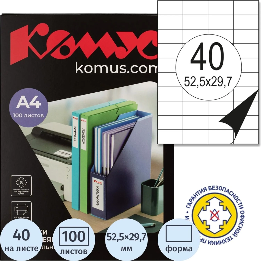 Этикетки самоклеящиеся 52,5х29,7 мм / 40 шт. на лис А4 (100л