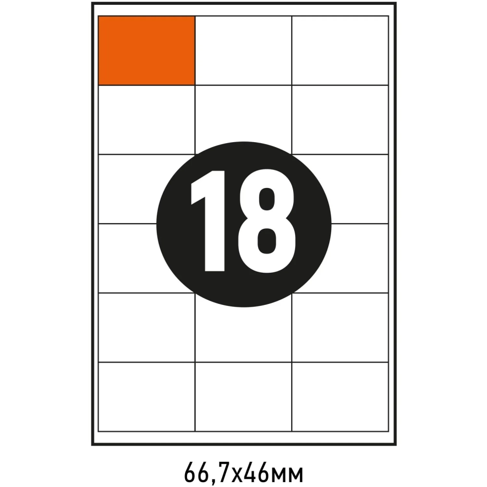 Этикетки самоклеящиеся 66,7х46мм, 18шт на лист А4,100л/уп