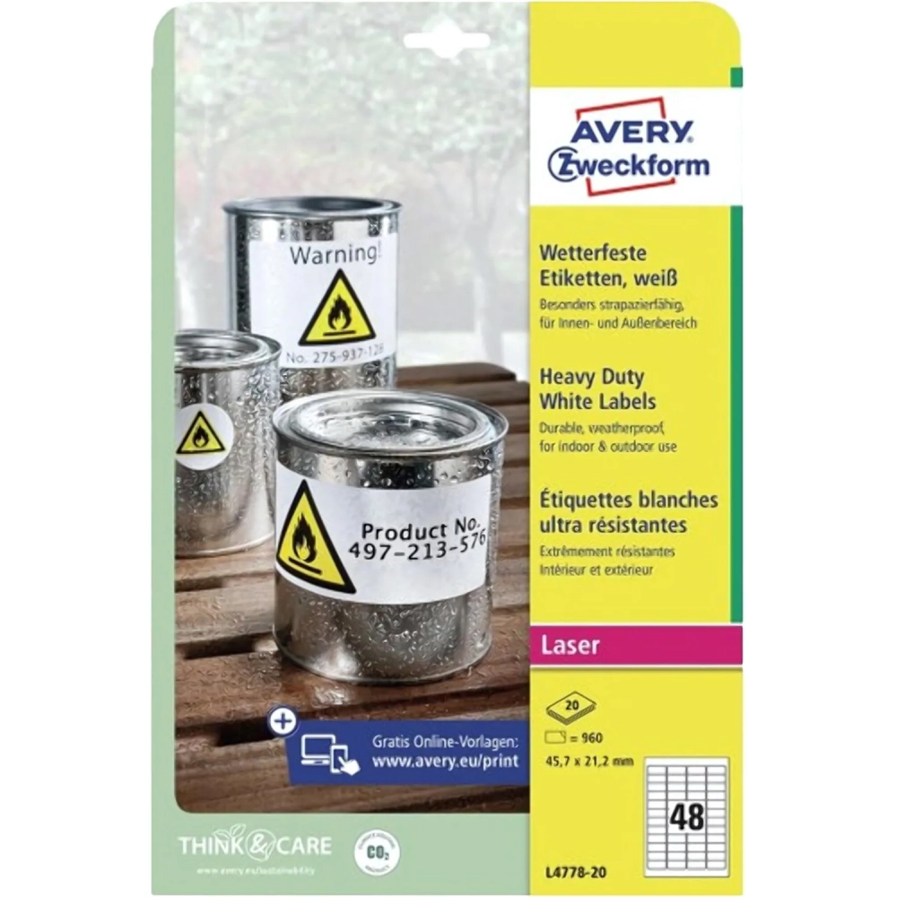 Этикетки самоклеящиеся L4778-20, 45,7x21,2 см, полиэстер, бел,960ш, 20л/уп