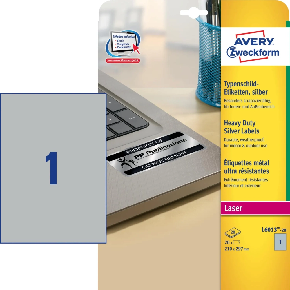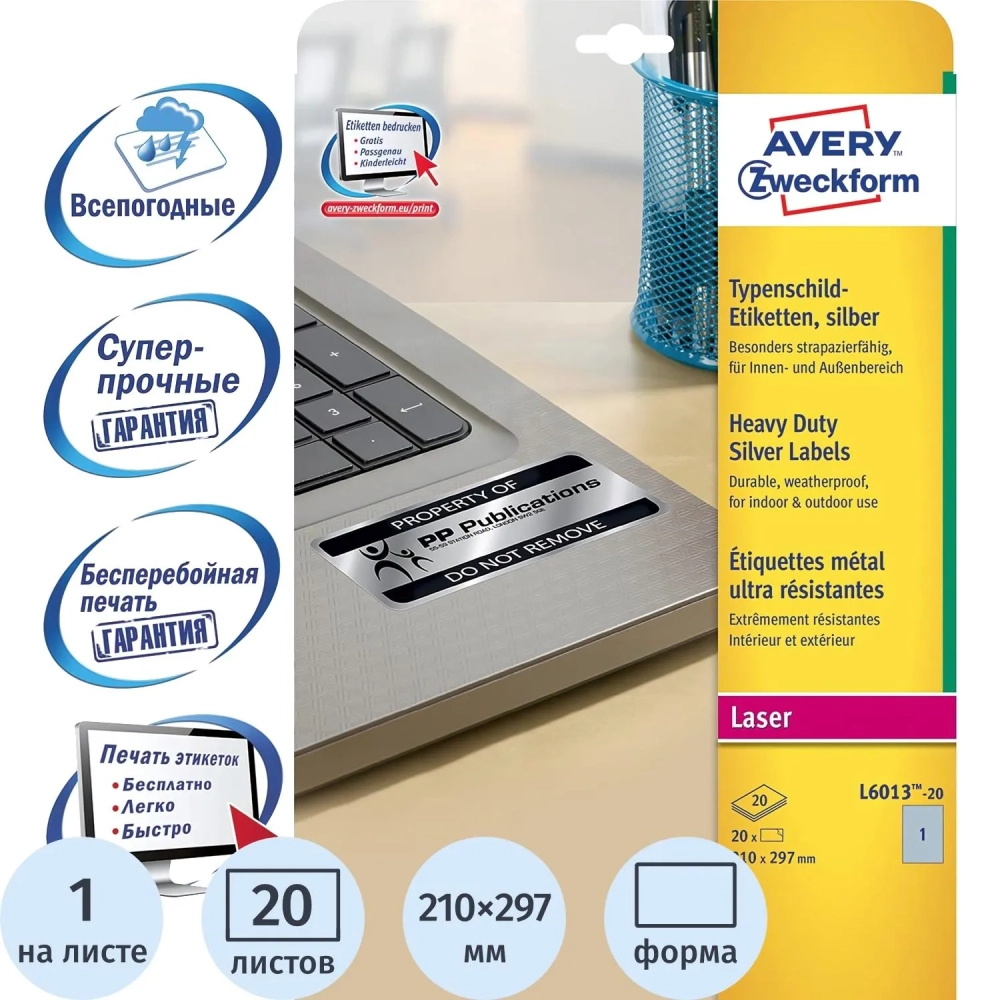 Этикетки самоклеящиеся L6013-20 Серебристые, 210х297 мм,L, 20л./уп.