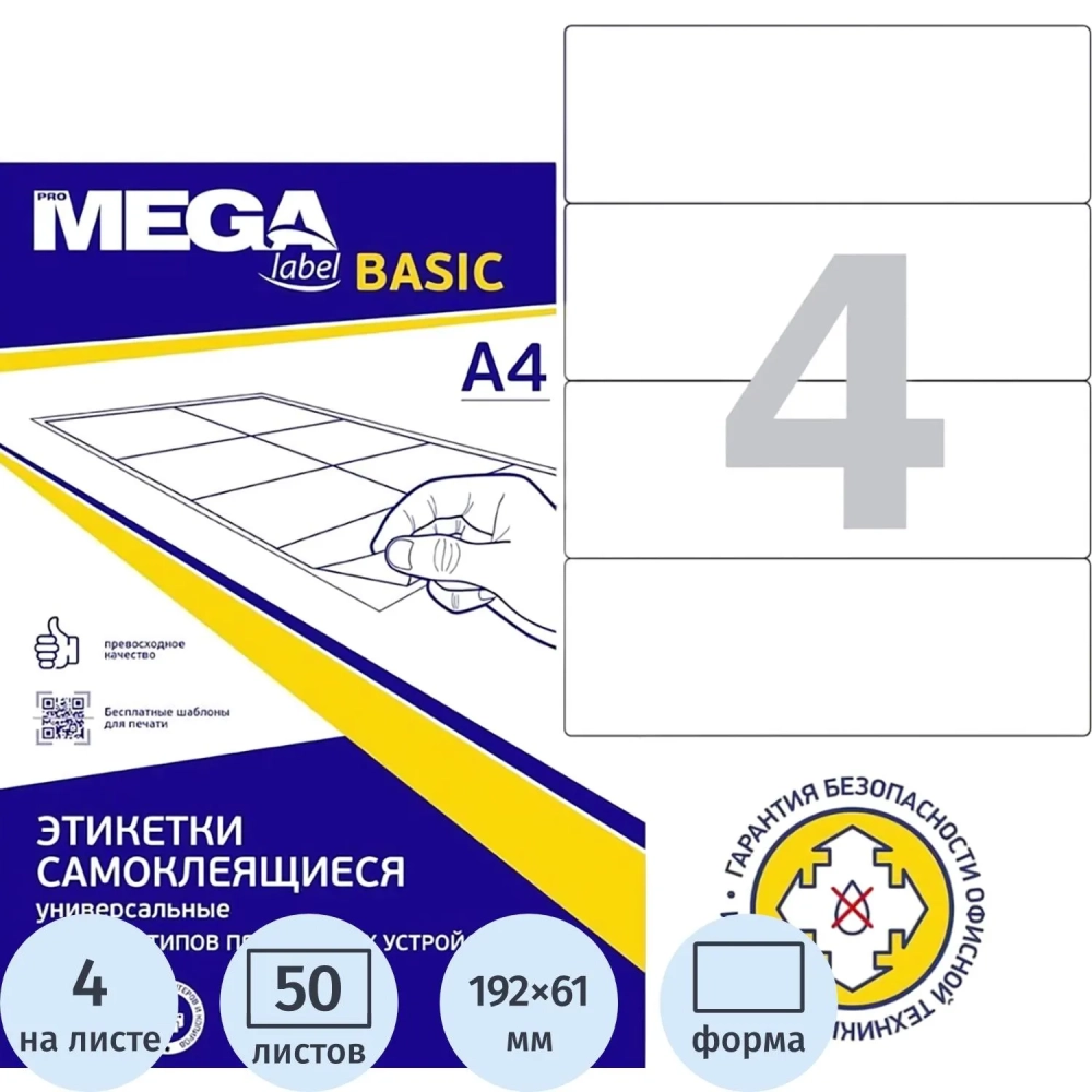 Этикетки самоклеящиеся п-рег192x61мм А4 4шт л бел50л/уп