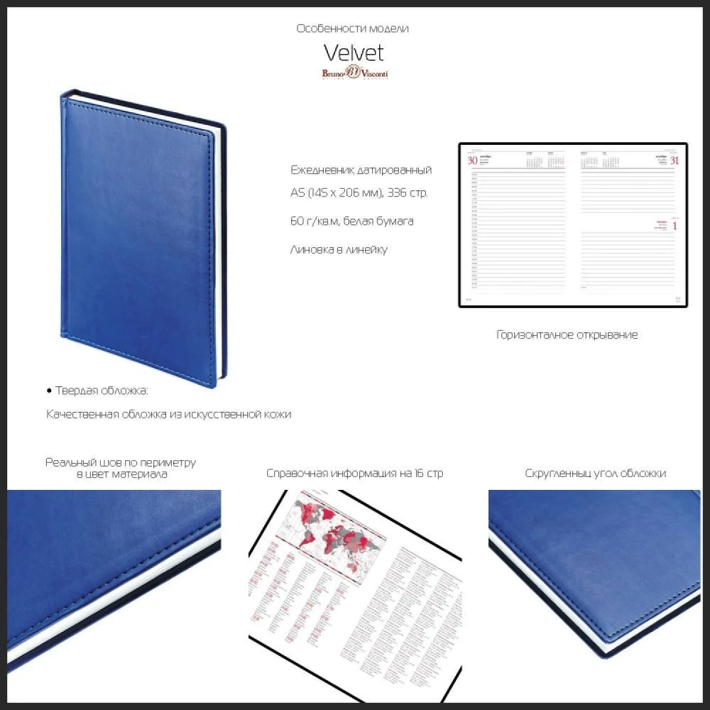 Ежедневник недатированный А5 145 х 205 мм Velvet серый 272 стр. 3-115/13