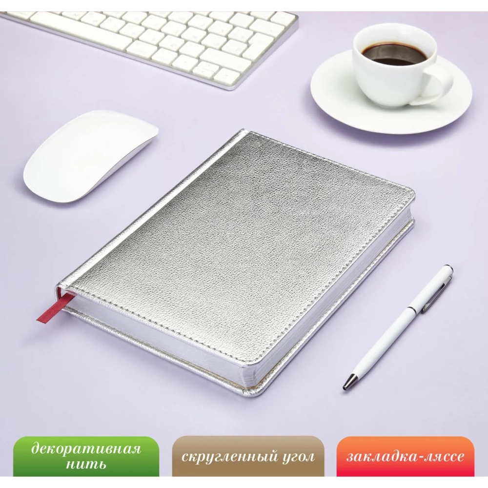 Ежедневник недатированный Sidney Nebraska, А5, 136л, серебро 3-128/10