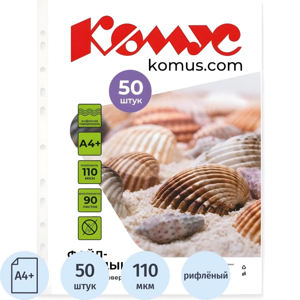 Файл-вкладыш А4+ 110 мкм Комус, 50 шт