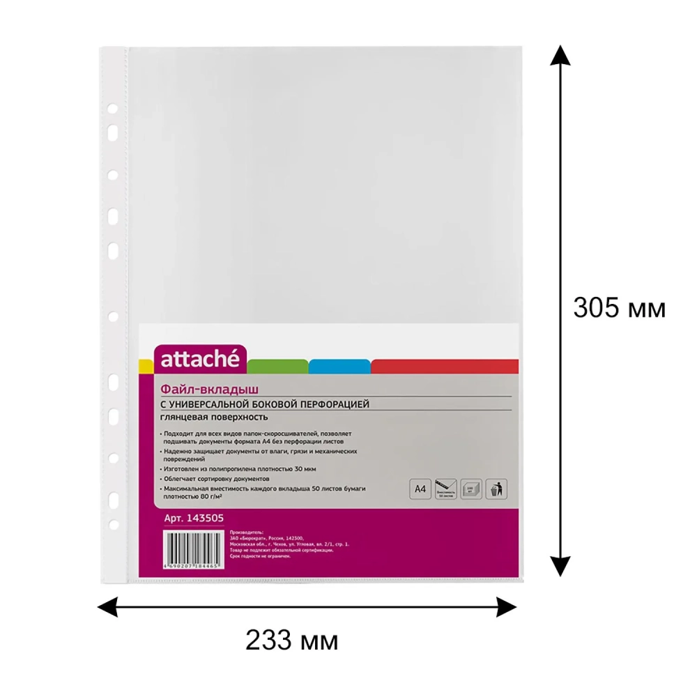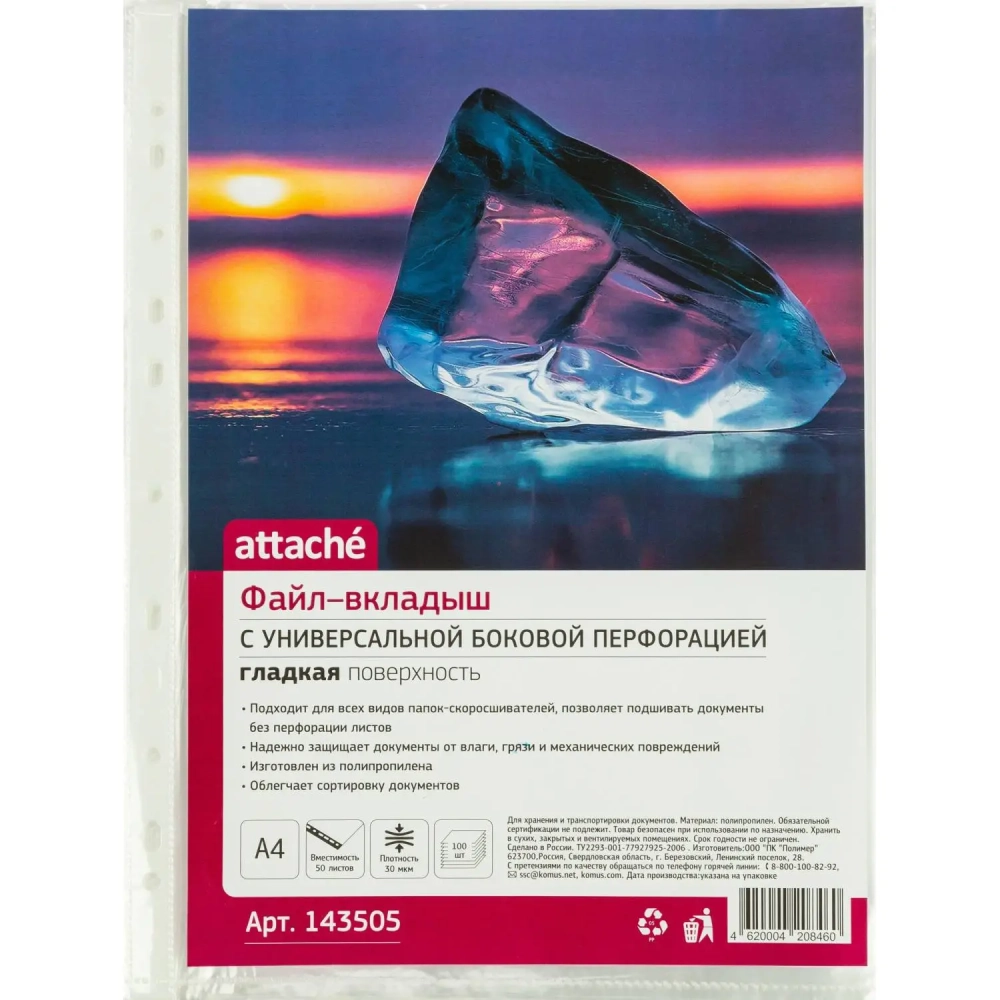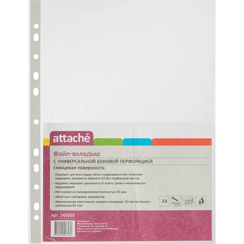Файл-вкладыш А4 30мкм Attache с перфорацией,100 шт