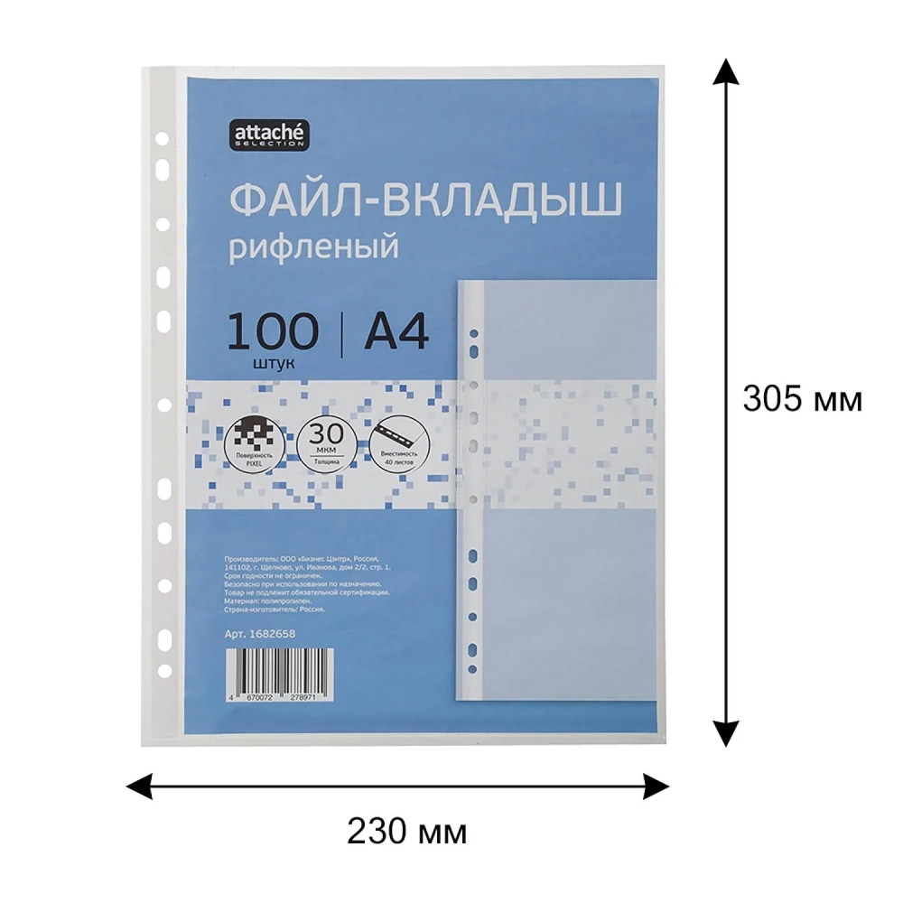 Файл-вкладыш А4, 30мкм, Attache Selection Pixel, рифленый, 100шт/уп