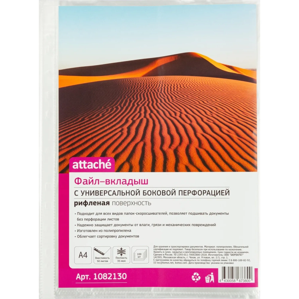 Файл-вкладыш А4 35 мкм, рифленые Attache, 100 шт.упаков