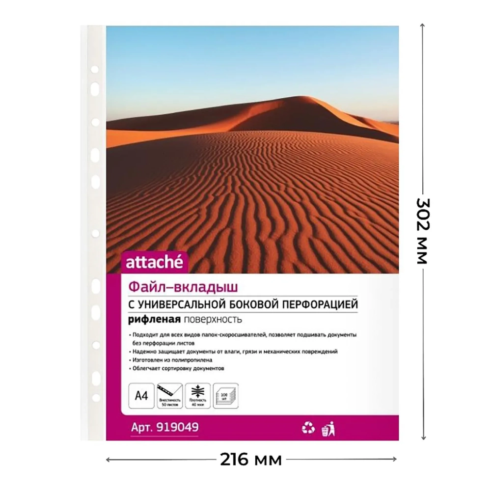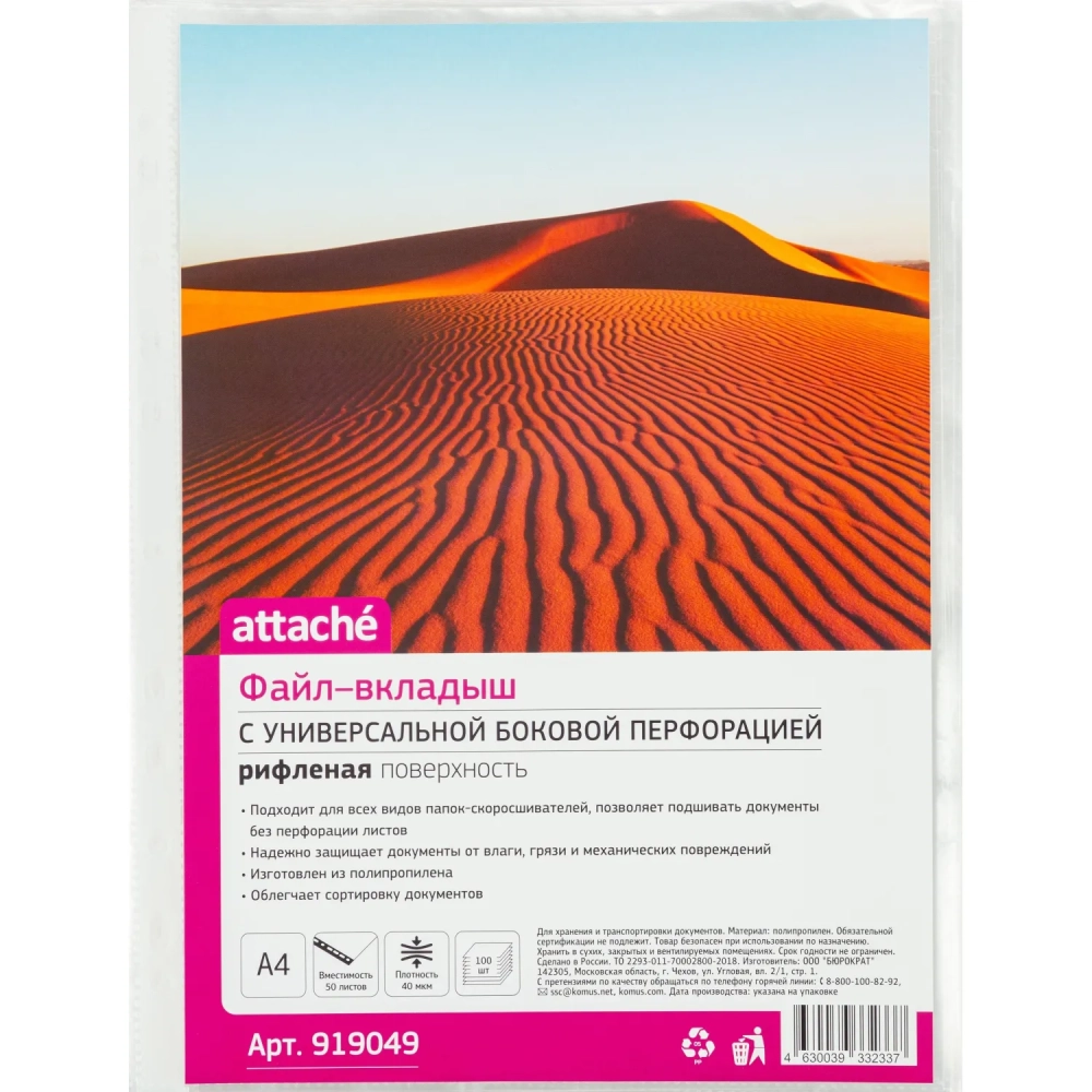 Файл-вкладыш А4 40мкм Attache с перфорацией,100 шт., рифлен.пов