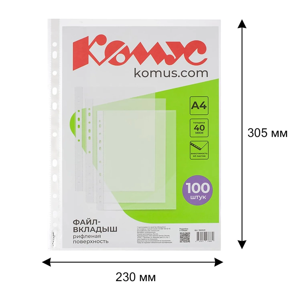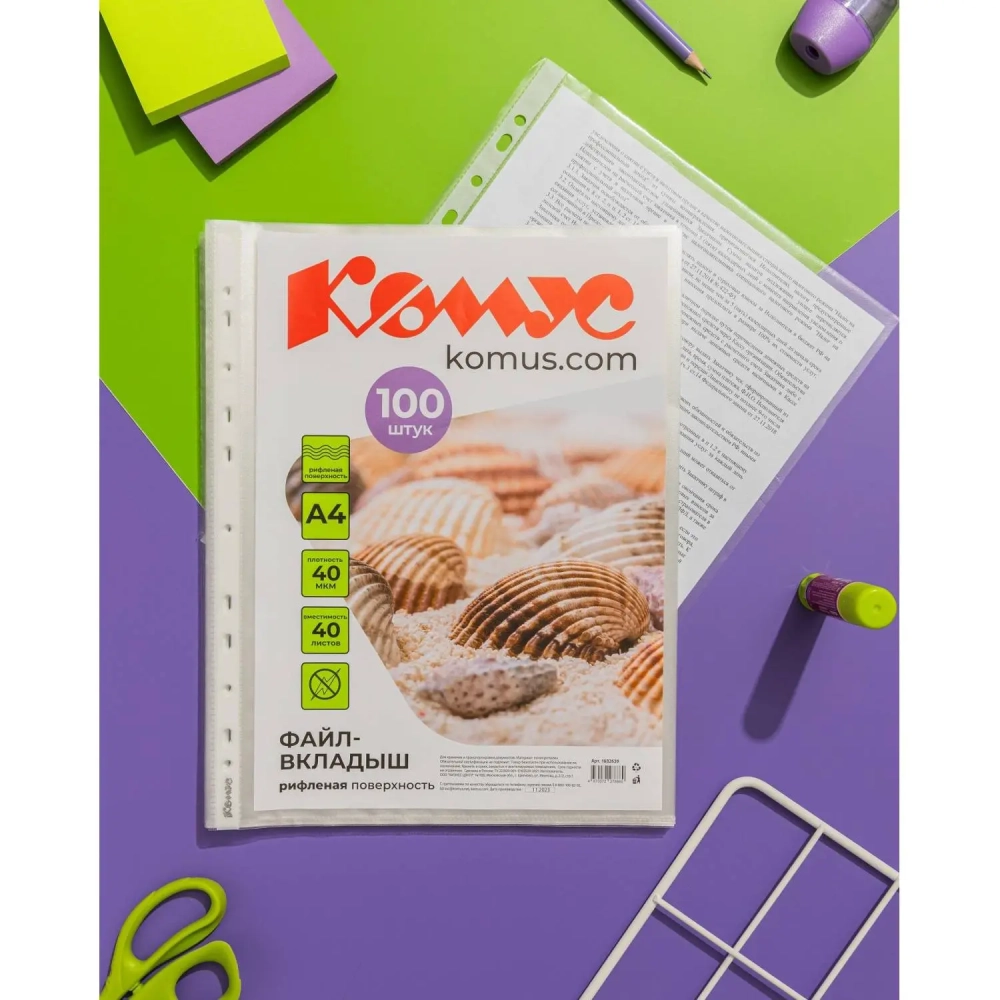 Файл-вкладыш А4, 40мкм Комус 100шт/уп, рифленый