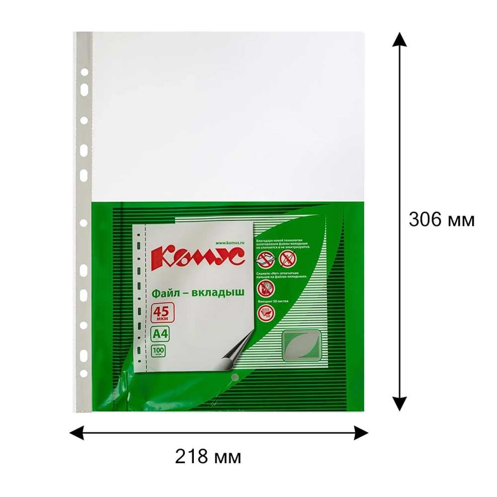 Файл-вкладыш А4 45 мкм Комус, 100 шт