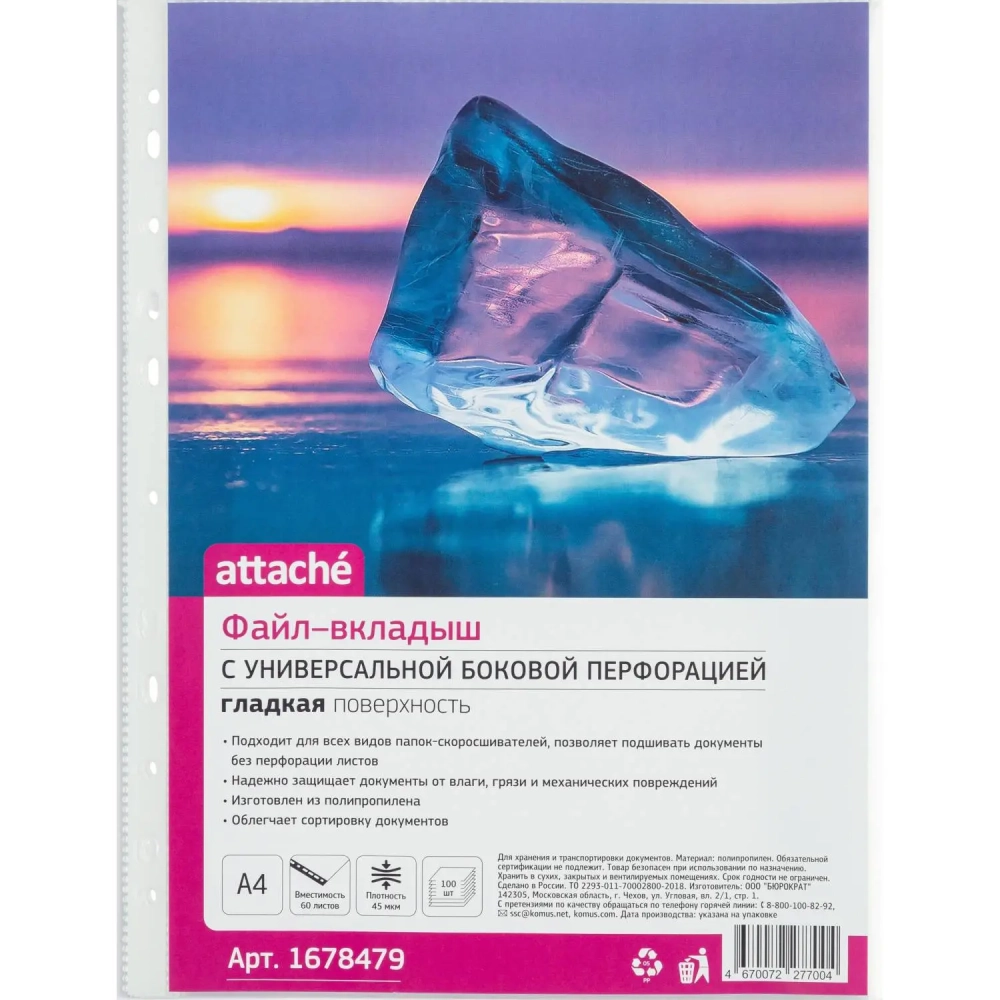 Файл-вкладыш А4, 45мкм, Attache, гладкая, 100шт/уп