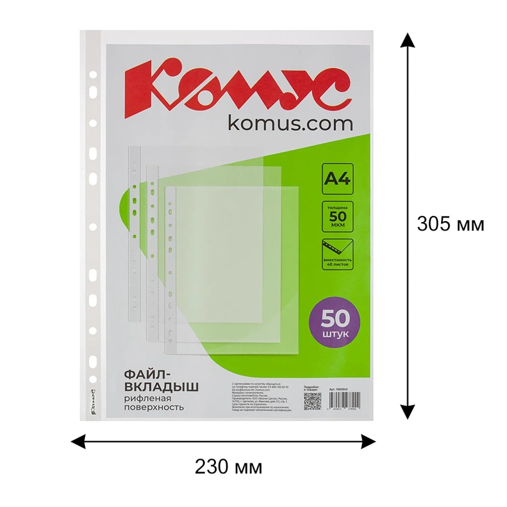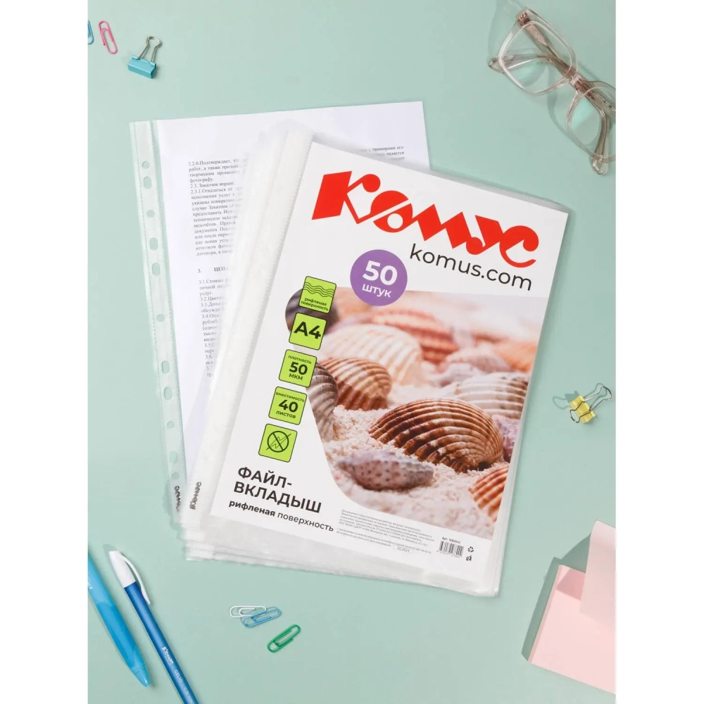 Файл-вкладыш А4, 50мкм, Комус 50шт/уп, рифленый