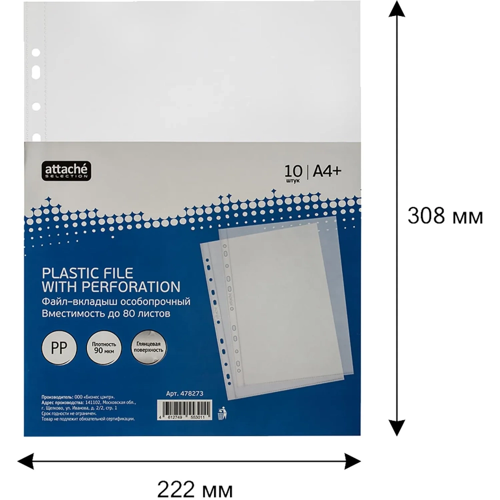 Файл-вкладыш А4+ Attache Selection 90 мкм, у п.10 шт/уп