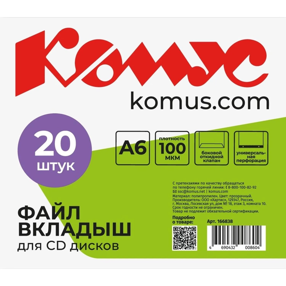 Файл-вкладыш для 1 CD Комус, 20 шт