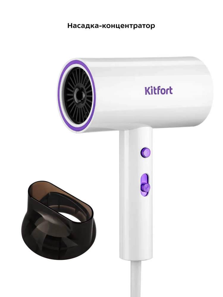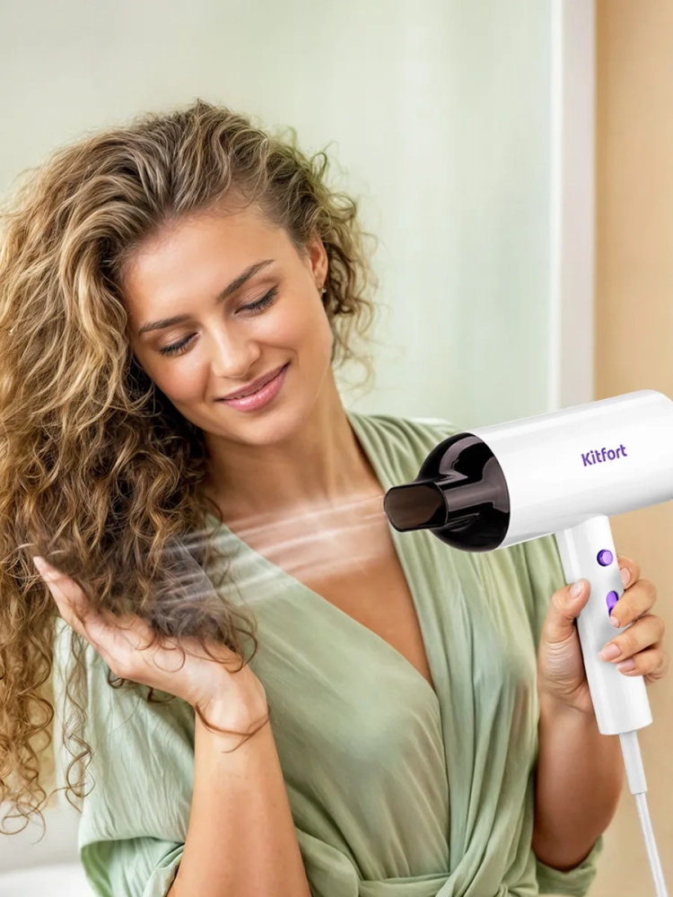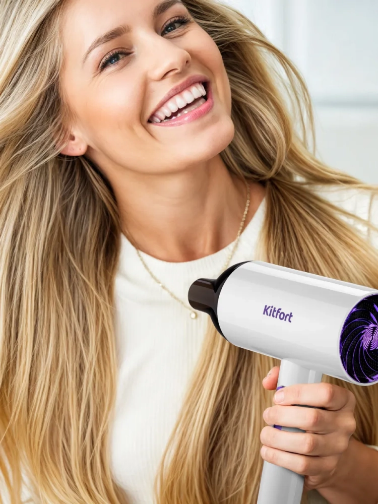 С помощью фена Kitfort КТ-3201 вы сможете быстро высушить волосы и сделать красивую укладку. Фен выдает направленный поток воздуха, поэтому волосы с ним сушить просто и удобно.
