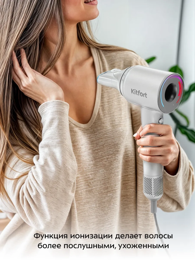 Режим с чередованием холодного и горячего воздуха упрощает укладку волос: горячий воздух быстро сушит, а холодный закрепляет укладку. А также режим защищает волосы и чувствительную кожу головы от перегрева.