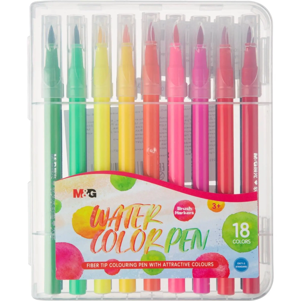 Фломастеры M&G, круглый корпус, смываемые, 18 цветов в наборе