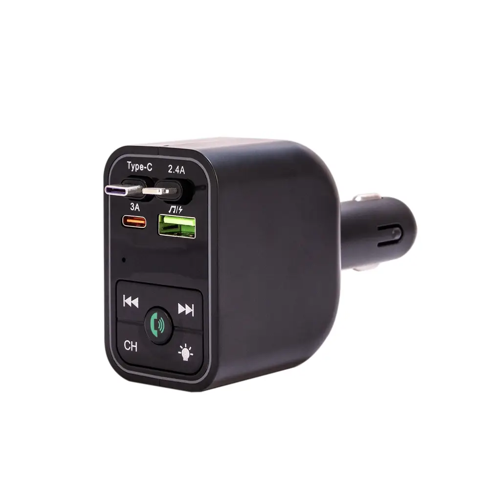 FM-Bluetooth модулятор CAR-Y3 4 IN 1 - это многофункциональное автомобильное устройство, сочетающее в себе мощную зарядку, FM-трансмиттер, LED-подсветку. Идеальное решение для современного автомобиля, обеспечивающее комфорт, функциональность и стильный дизайн. Благодаря встроенным проводам Lightning и Type-C, которые имеют пружинный механизм сматывания, вам будет удобно брать необходимый провод в дороге. Встроенный Bluetooth модуль позволяет воспроизводить музыку с телефона, планшета или другого музыкального плеера по беспроводной связи через FM-радио вашего автомобиля. Так же имеются дополнительные разъёмы Type-C и USB (USB так же подходит для воспроизведения музыки через флешку), для зарядки.