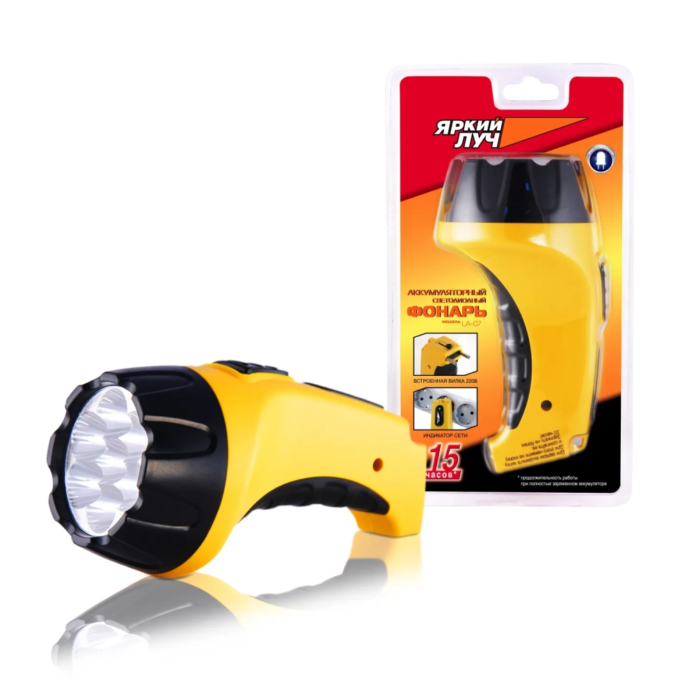 Фонарь ЯРКИЙ ЛУЧ LA-07 акк, 7 светодиодов, вилка 220В