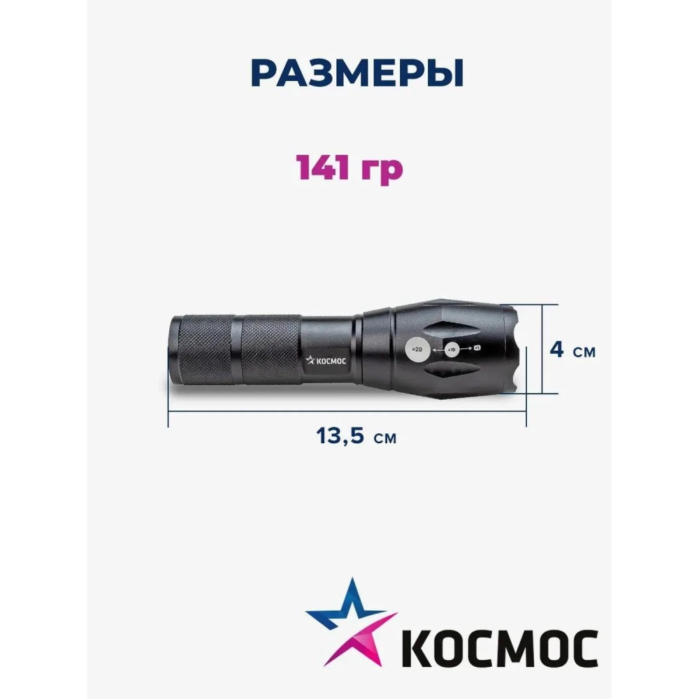 Фонарь КОСМОС Premium 5Вт Q5 LED питание 1х3.7V 18650 Li-on KosAL_5W