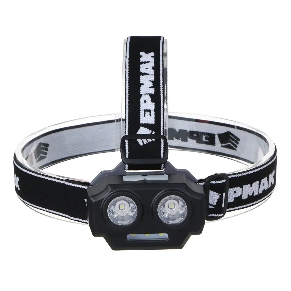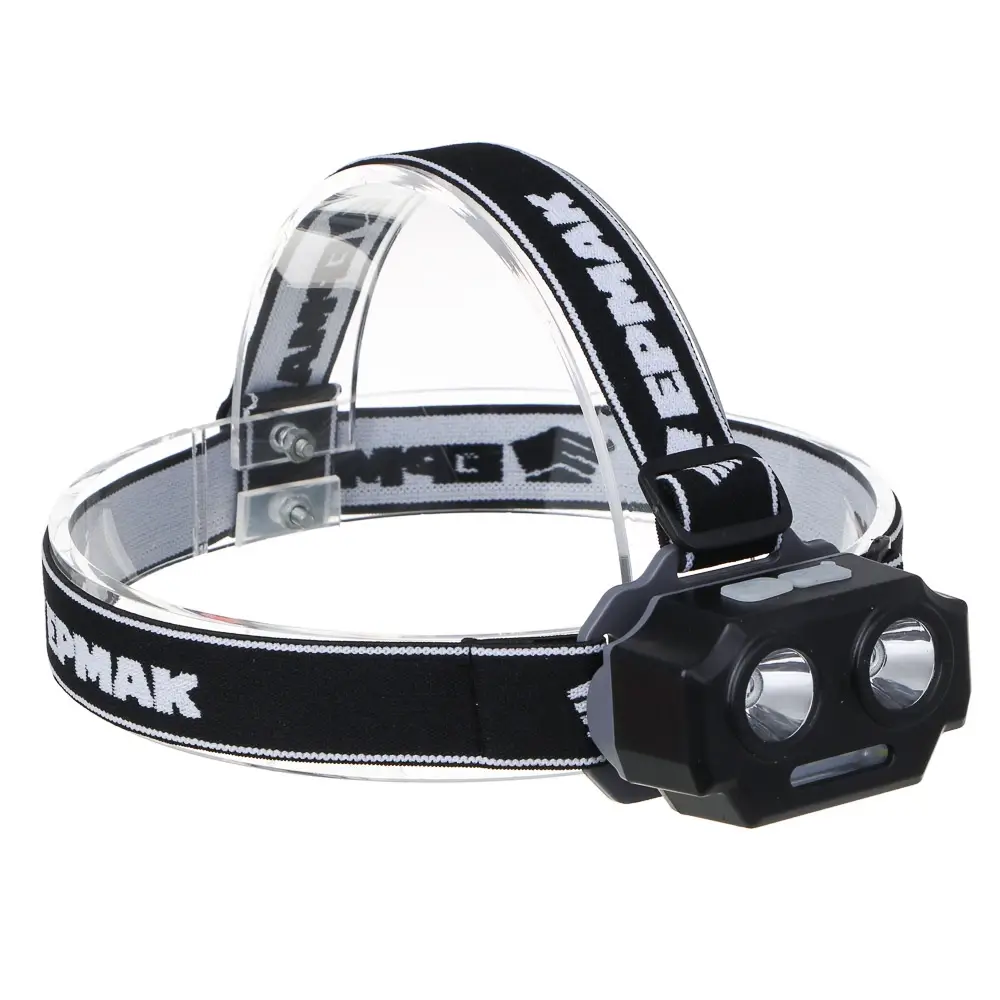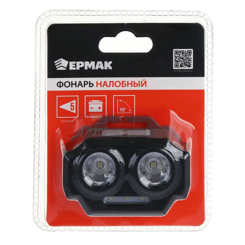 Фонарь налобный тм ЕРМАК, 2 P30 LED +3 SMD, 5 режимов, 1200мАч, 7,2х4,8х4см, USB кабель, пластик