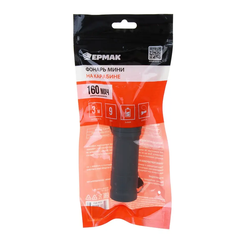 Фонарь ручной тм ЕРМАК, мини, прорезиненное покрытие, 9 LED, 1 режим, 3хААА