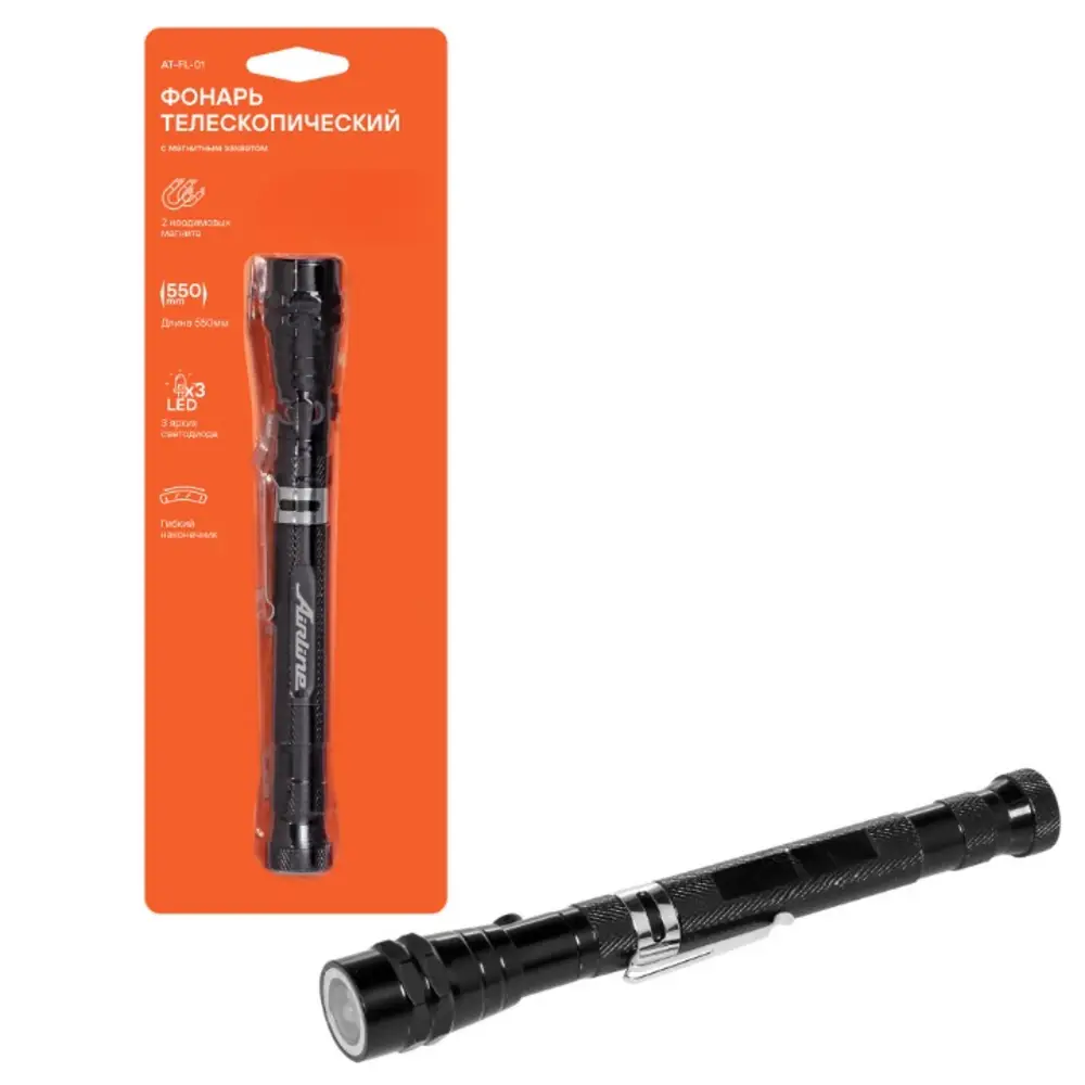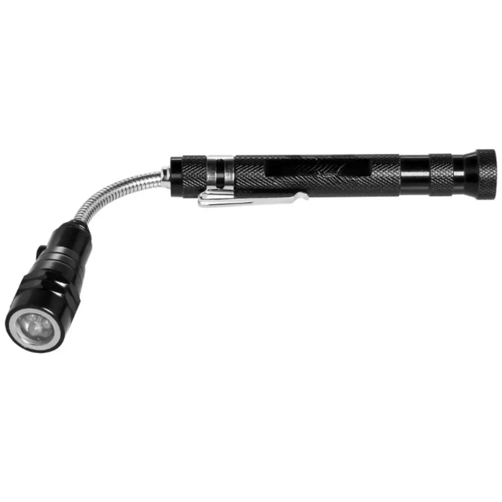 Универсальный фонарь помогает решить несколько задач. Крепится на магните к металлической поверхности. Оснащён тремя яркими светодиодами. Вытягивается до длины 550мм. Имеет гибкий наконечник с неодимовым магнитом, для извлечения крепежа из самых труднодоступных мест.