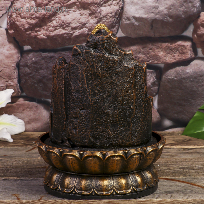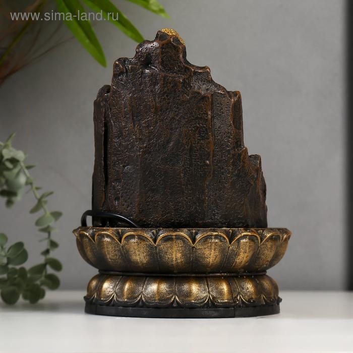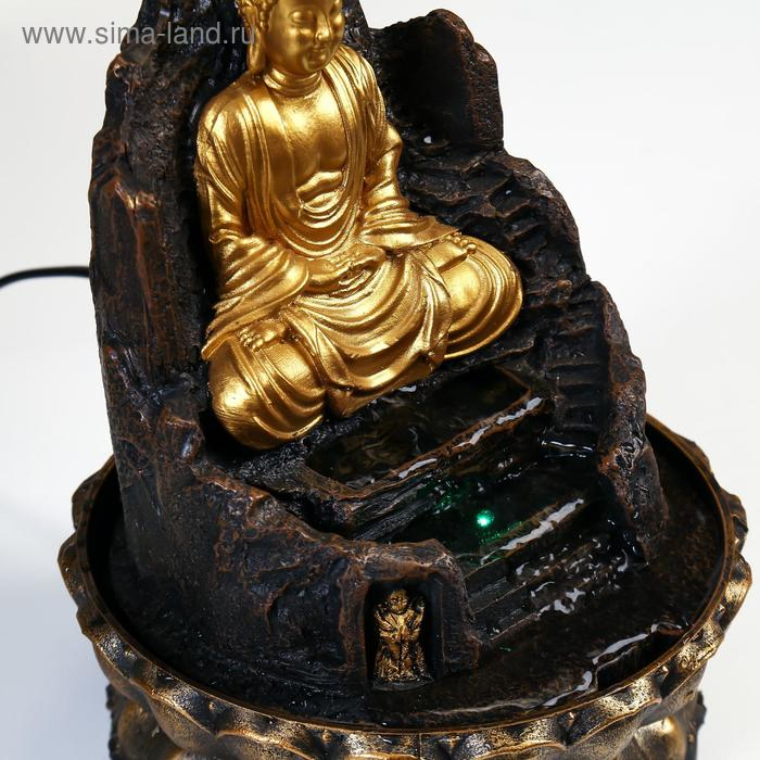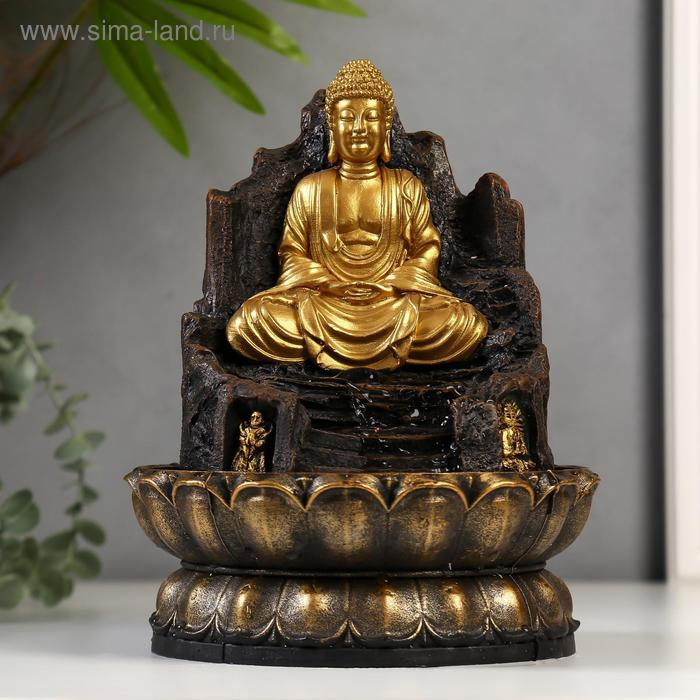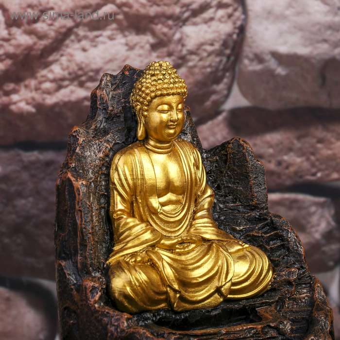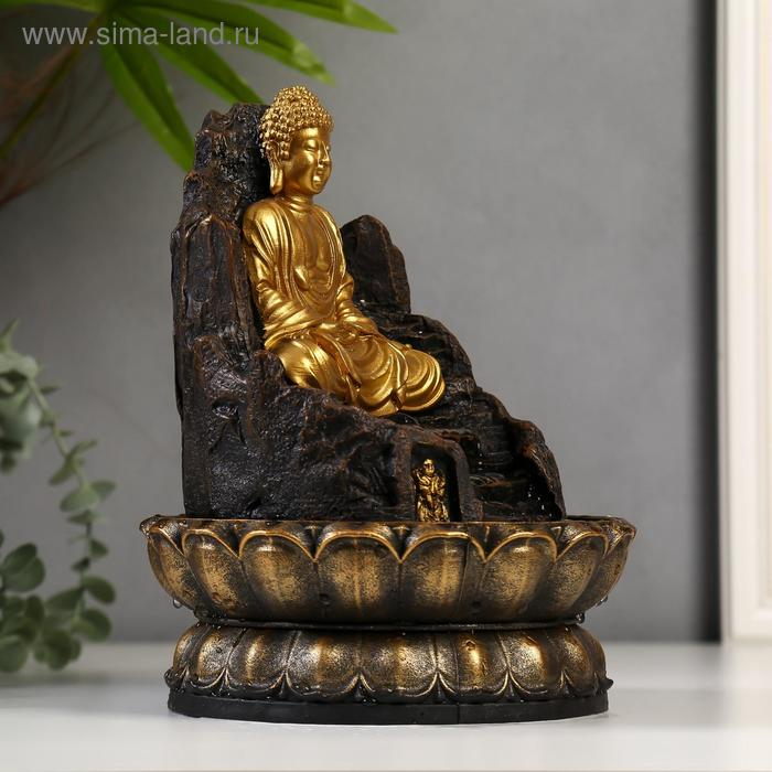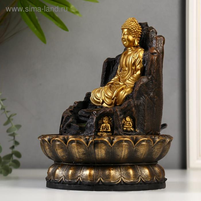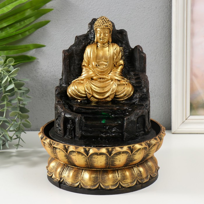 Фонтан настольный от сети, подсветка "Золотой Будда на троне из скалы" 28х20,5х20,5 см