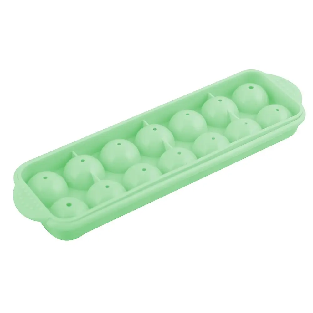 Пластмассовая форма для льда «Шарики» — простой и очень удобный вариант для заготовки ледяных шариков для коктейлей, напитков, замораживания отваров трав, лимонного сока, листьев мяты и специй. Изделие имеет 14 ячеек. Чтобы шарики получились абсолютно ровными, наполните нижнюю часть формы водой, холодным кофе или другим напитком, затем плотно накройте её верхней частью формы, лишняя жидкость вытеснит воздух из формы. Положите форму горизонтально в морозильную камеру на несколько часов. Готовый лёд аккуратно извлеките из ячеек и добавьте в напиток. Чтобы удивить гостей, используйте цветные ингредиенты для приготовления льда. Изготовлено из пластмассы (полипропилен). Размер 24х7х3см. После применения промойте в воде с моющим средством.