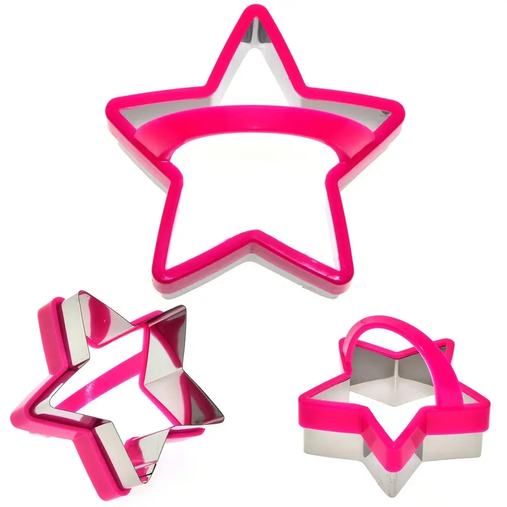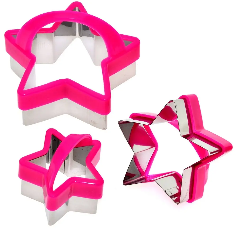 Кулинарные формы «Звездочки» используются для вырезания фигурок из теста, приготовления слоеных блюд, салатов, оформления пирожных. В наборе три формочки 4,5х5;6х6;8,5х6,5см, высота бортика 2,5 см. На каждом изделии есть ручка, за которую удобно держаться во время работы, вторая сторона используется непосредственно для вырезания. Формочки удобно хранить — достаточно сложить их одна в другую, чтобы не занимать много места. После использования промойте губкой с моющими средствами. Формы изготовлены их коррозионностойкой (нержавеющей) стали, ручка из пластмассы (полипропилен).