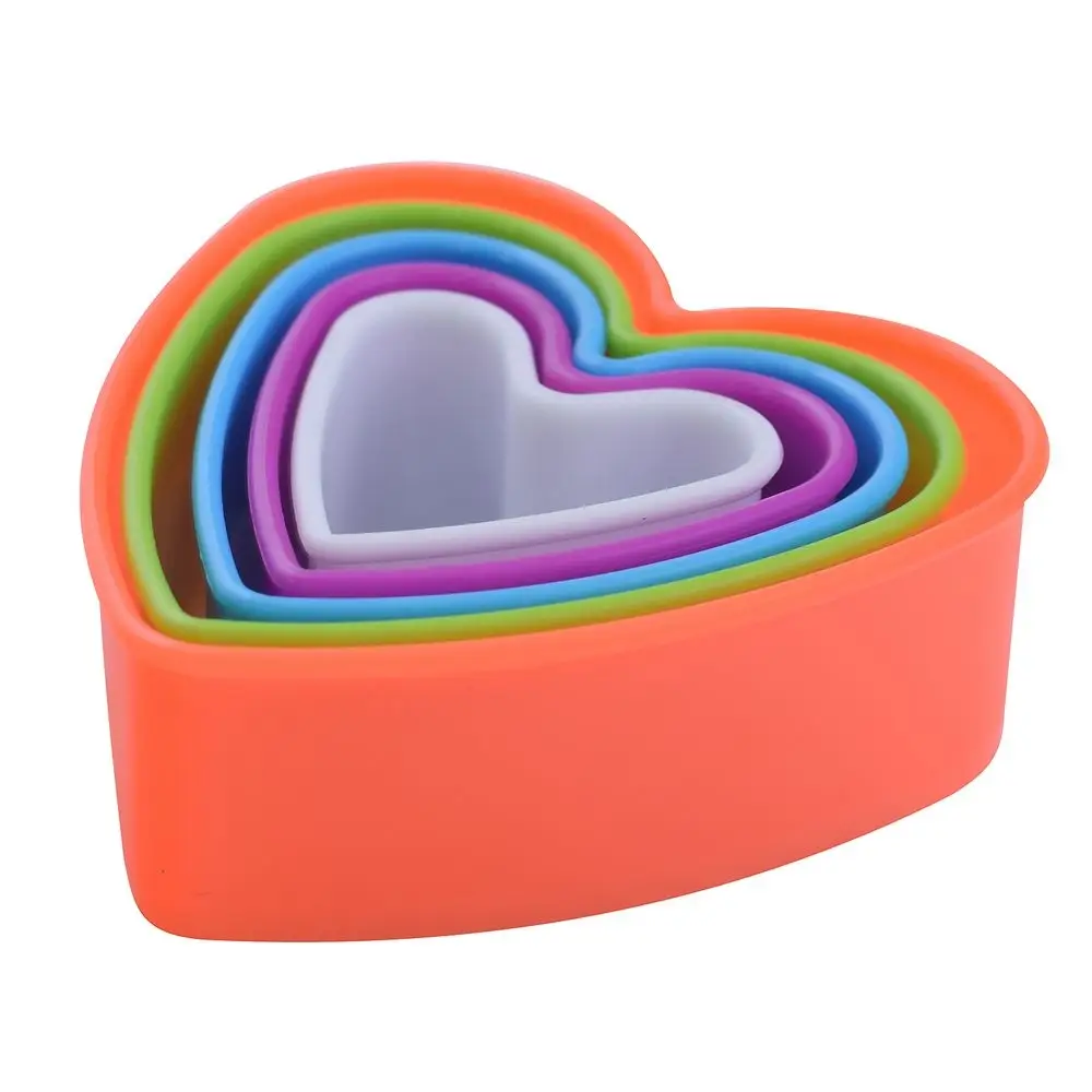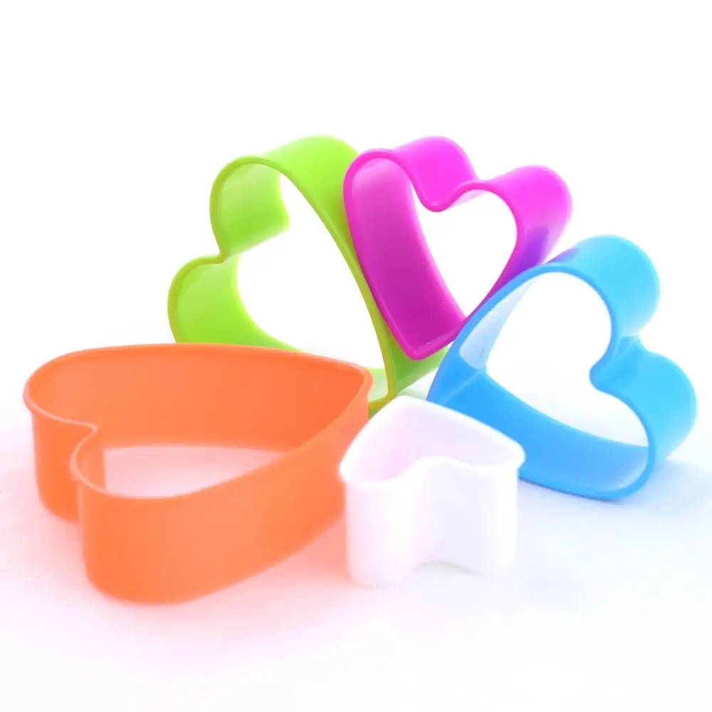 Вырезайте фигурки из теста, создавайте многоярусные десерты, оформляйте салаты с набором кулинарных форм «Сердце». В наборе 5 формочек в виде сердечек, высотой 3,5 см, с размерами 5х5; 6х6,3; 7х7,5; 8х8,5; 9х9,5 cм. Приспособления имеют несколько способов применения, с их помощью можно: