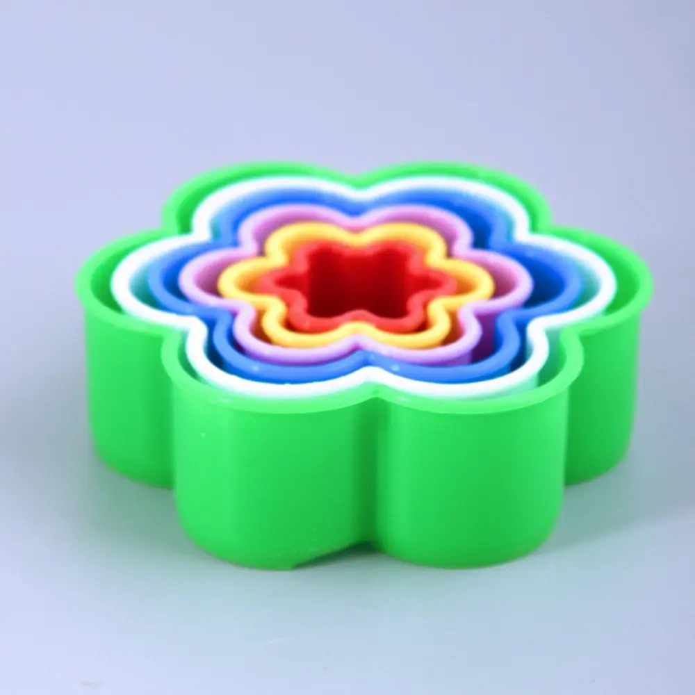Формочки для вырезания печенья всегда пригодятся на кухне, кроме того они могут использоваться для оформления салатов, вырезания бисквита, приготовления многоярусных десертов и декорирования блюд. В набор кулинарных форм «Цветок» входит 6 изделий, выполненных из пластмассы (полипропилена) с диаметрами 3,3; 4,6; 6; 7,3; 8,5 и 9,5 см. Используйте приспособления в повседневной жизни и для создания праздничных блюд. После применения рекомендуется промыть губкой с использованием жидких моющих средств. Формы удобны в хранении, так как складываются друг в друга.