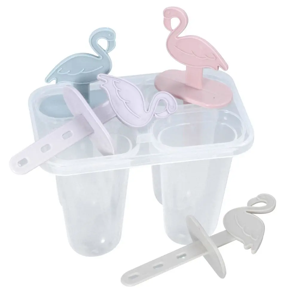 Крышки-палочки выполнены в виде фламинго, оригинально смотрятся и удобны в использовании. Сама форма продумана так, чтобы мороженое было легко доставать. Перед первым использованием вымойте все детали в проточной воде с моющими средствами. Изготовлено из пластмассы (полипропилен).