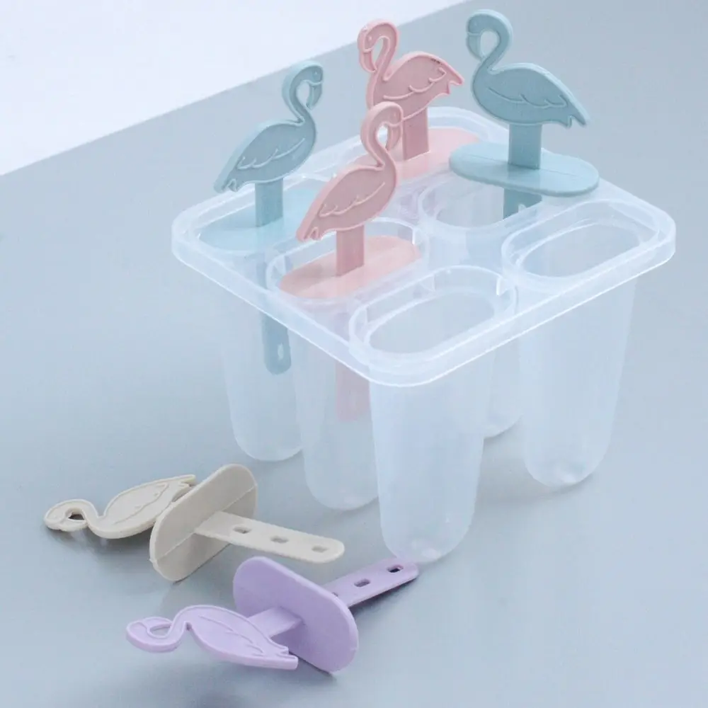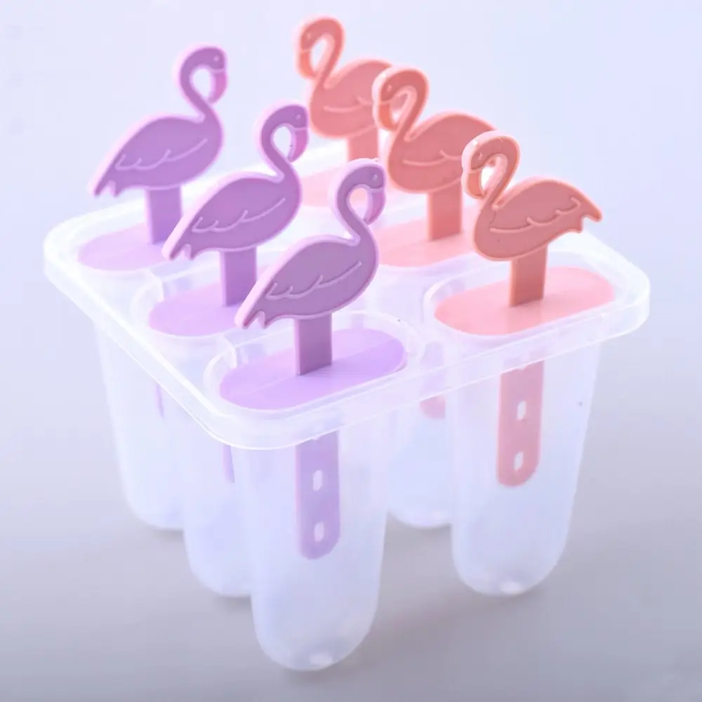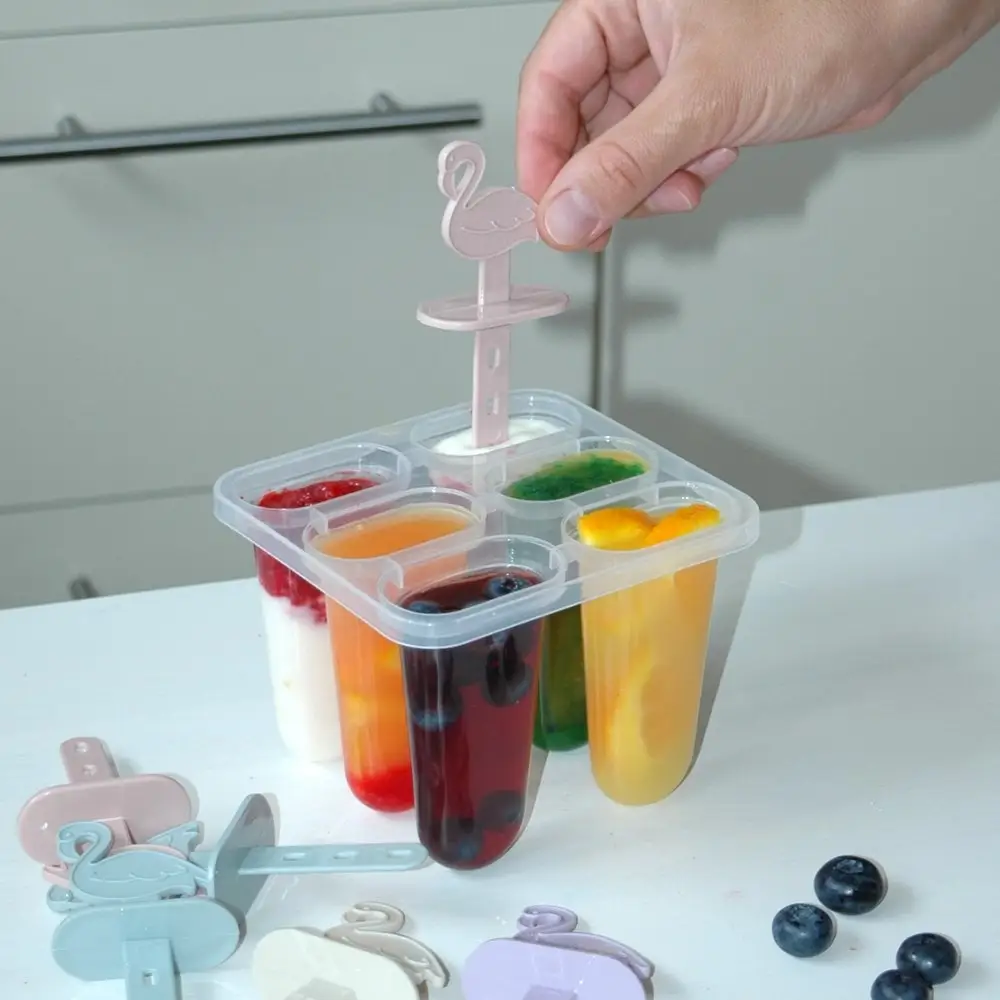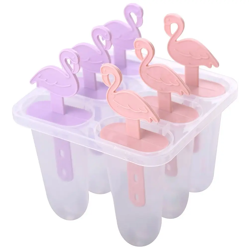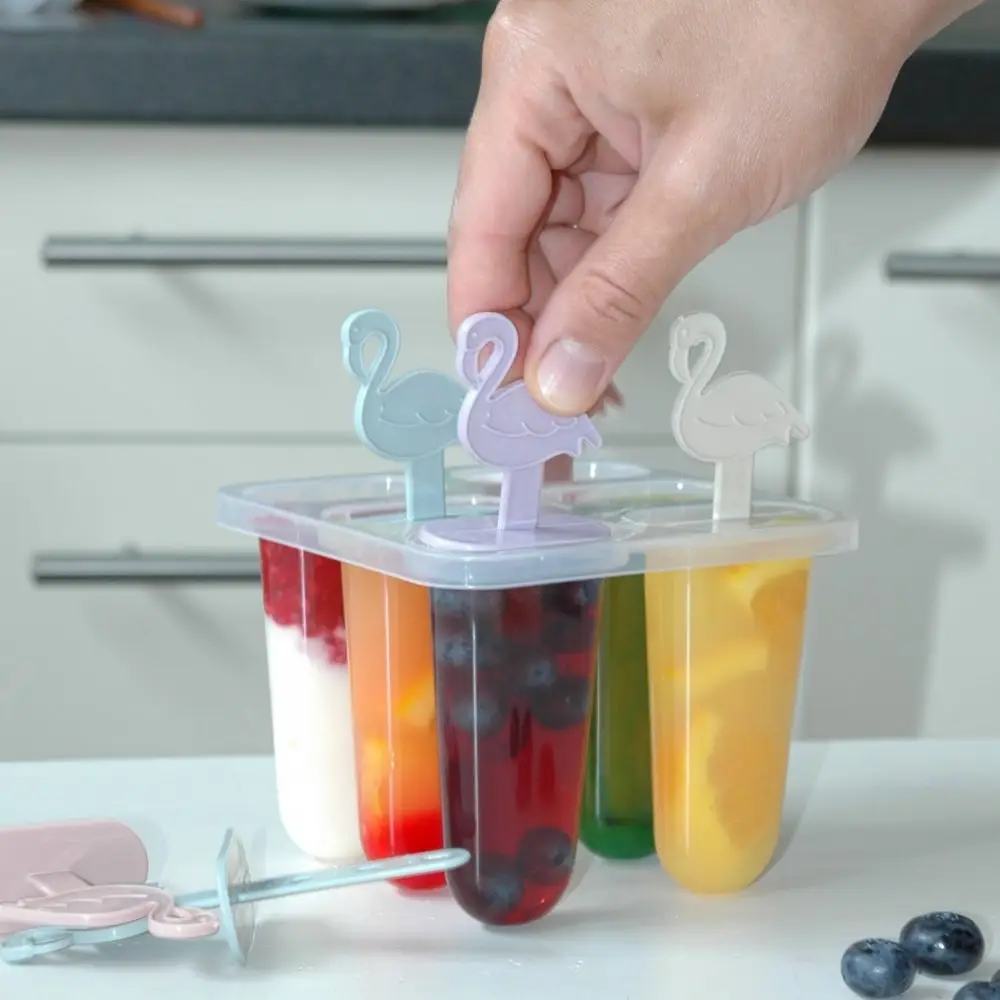 Крышки-палочки выполнены в виде фламинго, оригинально смотрятся и удобны в использовании. Сама форма продумана так, чтобы мороженое было легко доставать. Перед первым использованием вымойте все детали в проточной воде с моющими средствами. Изготовлено из пластмассы (полипропилен).