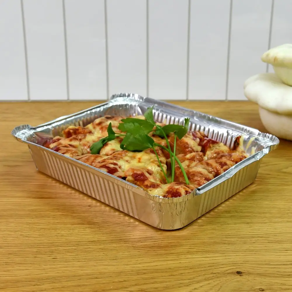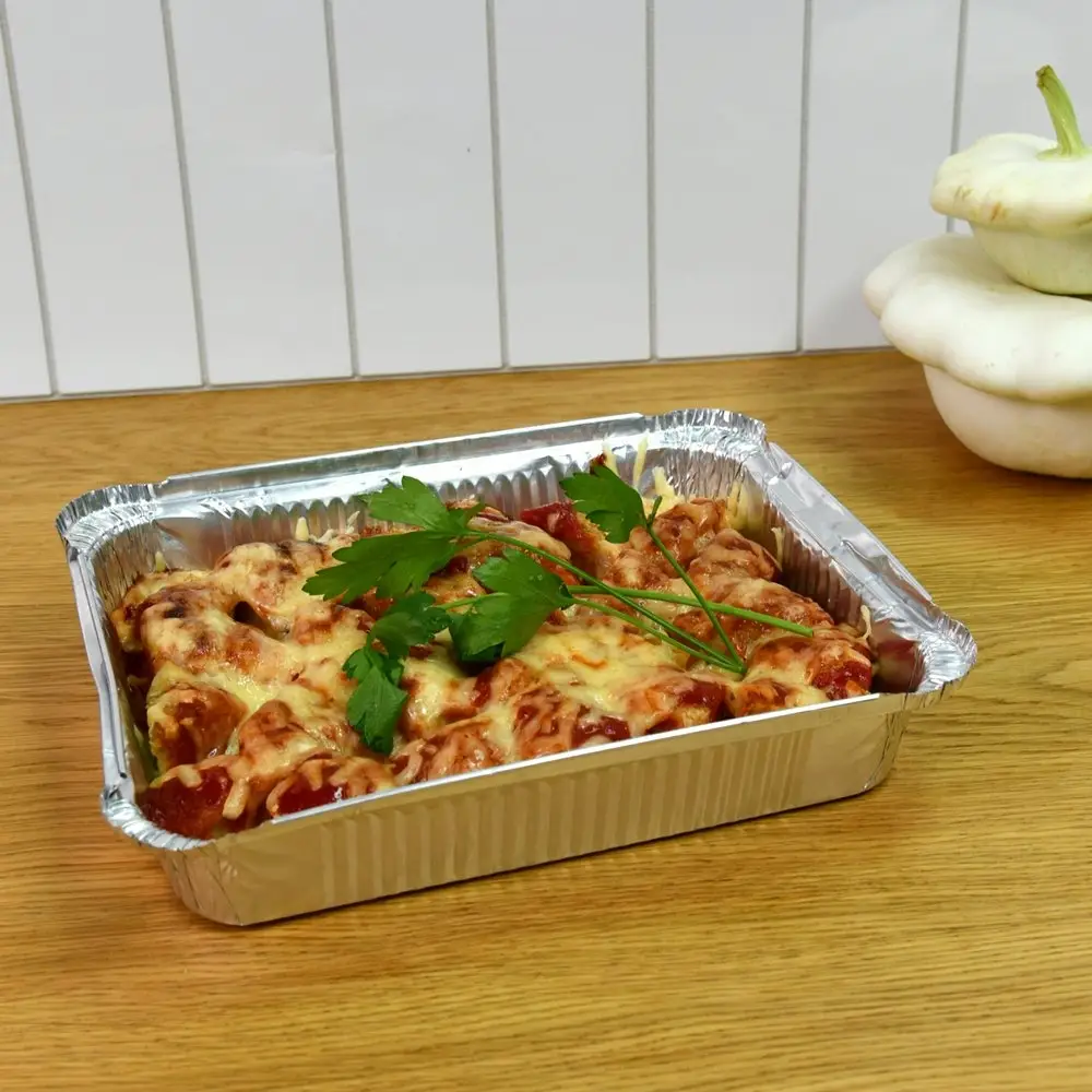 Большие одноразовые формы подойдут для запекания хлебобулочных изделий, мясных блюд, приготовления запеканок, бисквитов, омлетов, заливных. Формы изготовлены из алюминия, этот материал равномерно нагревается, имеет хорошую теплопроводность, не разрушается при воздействии холода. Формочки могут подвергаться нагреванию до 280°С и заморозке до - 40°С. Выпекать можно в обычной духовке и в микроволновых печах. Пища, приготовленная в алюминиевых формах, отличается сочностью, привлекательным внешним видом, лучше сохраняет вкусовые качества. Материал не впитывает жир и влагу, поэтому блюда получаются сочными.