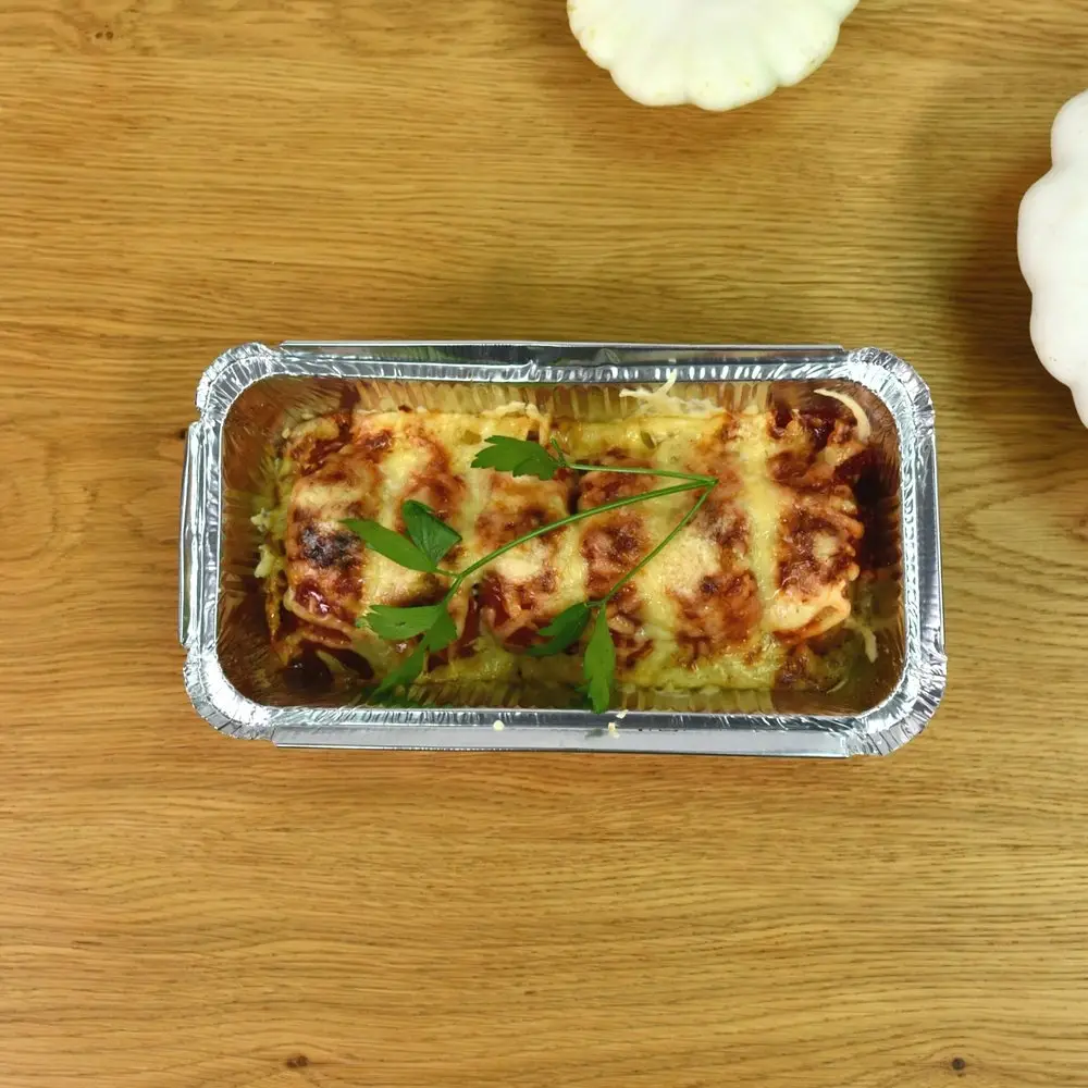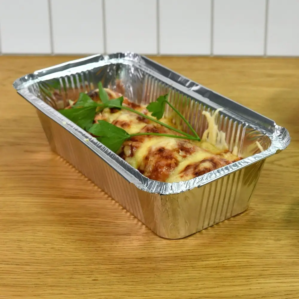 Не храните в формах кислые и соленые продукты. При использовании в СВЧ-печах соблюдайте правило: форма должна быть расположена в СВЧ-печи минимум на 2 см от стенок печки или от другой посуды из алюминиевой фольги. Размер 20х10х5 см, объем 865 мл.