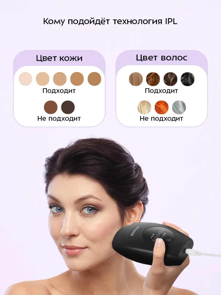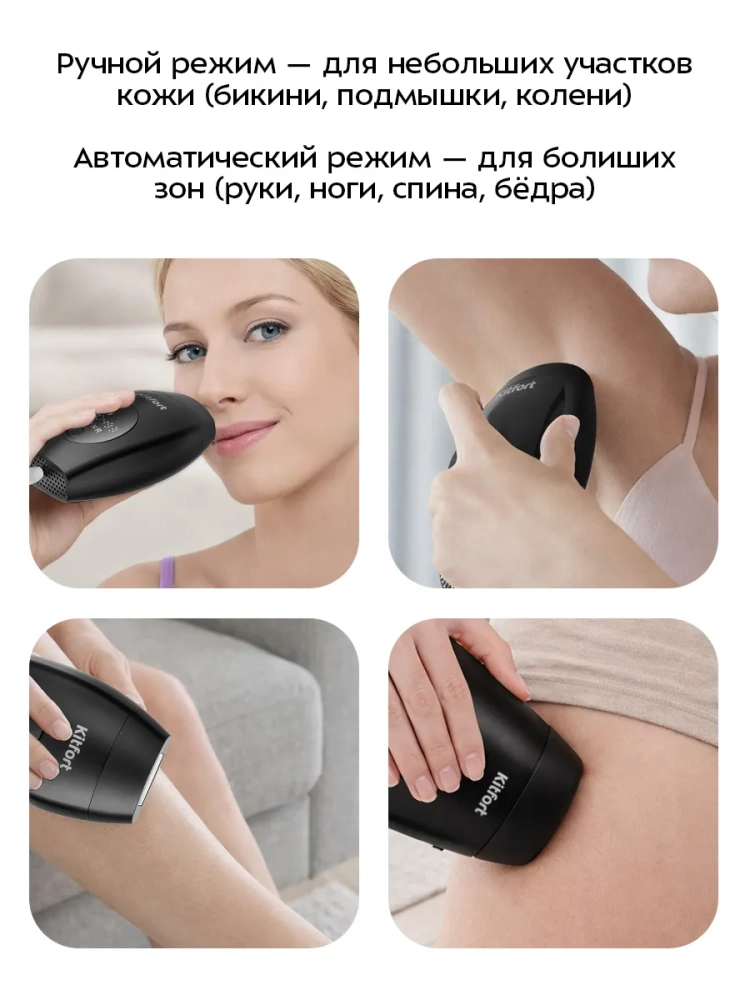 Фотоэпилятор Kitfort КТ-3129 поможет безболезненно и эффективно избавиться от нежелательных волос на долгое время, при этом вам не придется тратить время на посещение салона красоты.