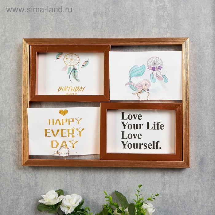 Фоторамка пластик на 4 фото 10х15 см "Медь" 26,5х2,5х35 см