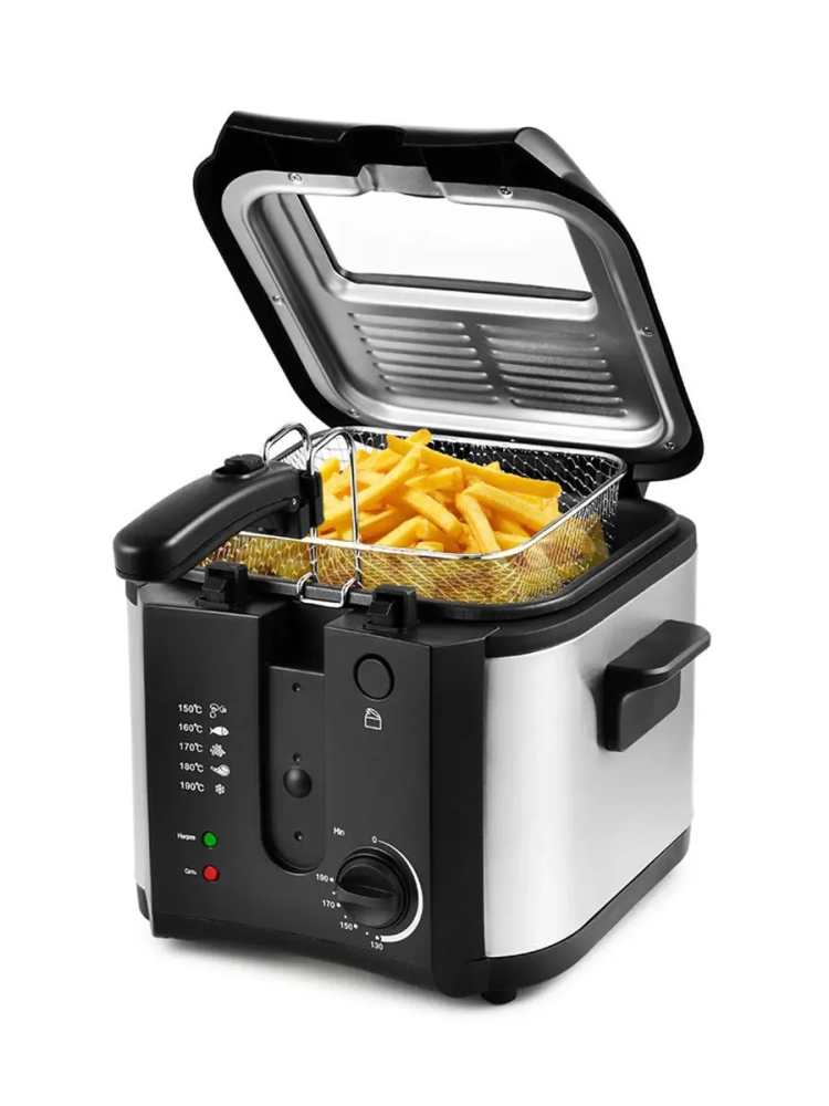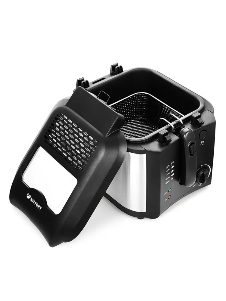 Во фритюрнице Kitfort КТ-2024 продукты жарятся в глубоком слое горячего масла. С помощью регулятора вы можете плавно устанавливать температуру приготовления. Чаша фритюрницы несъемная, покрыта антипригарным покрытием.