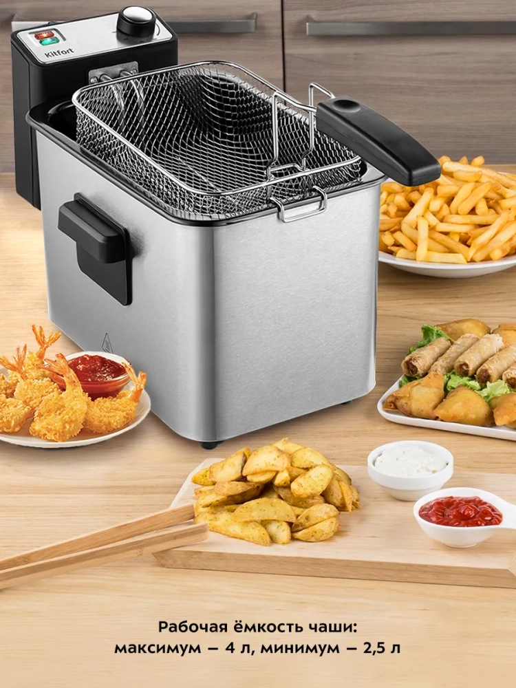 Фритюрница идеально подходит для использования дома, обеспечивая профессиональное качество приготовления. Она станет отличным дополнением к вашей кухонной технике, позволяя экспериментировать с различными рецептами и радовать семью вкусными блюдами. Независимо от того, готовите ли вы для себя или для большой компании, этот прибор справится с любой задачей, обеспечивая быстрый и качественный результат.