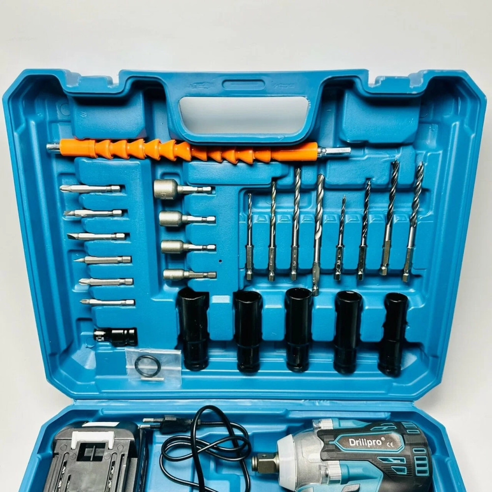 B комплекте идёт переходник под шуруповерт и 25 насадок для удобства работы дома, на даче, или на улице. Установив насадку переходник гайковерт превратится в мощную дрель-шуруповерт. Вы получаете 3 инструмента в 1. Очень удобно, не нужно таскать с собой несколько видов инструмента.