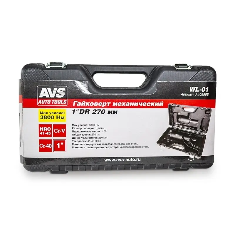 Гайковерт механический 1"DR 270 мм, 3800Нм, 1:58 в кейсе AVS WL-01