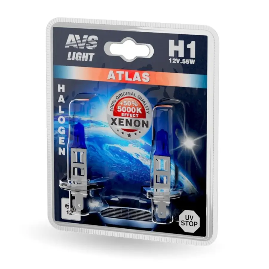 Лампы с повышенной светоотдачей. Автолампа AVS Atlas на 30% ярче стандартных ламп. Свет фар с этими лампами похож на свет фар с ксеноновыми лампами (XENON EFFECT).