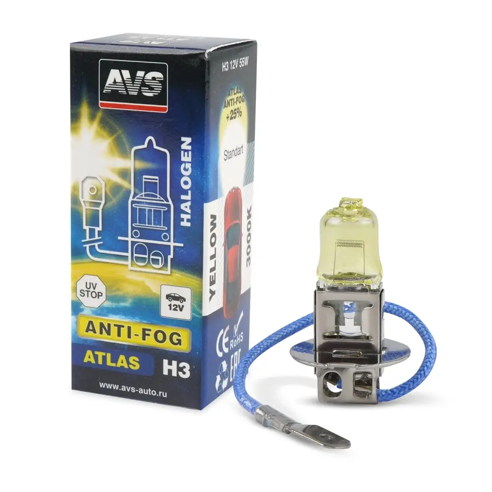 Галогенная лампа AVS/ATLAS ANTI-FOG/BOX желтый H3.12V.55W.коробка 1шт.