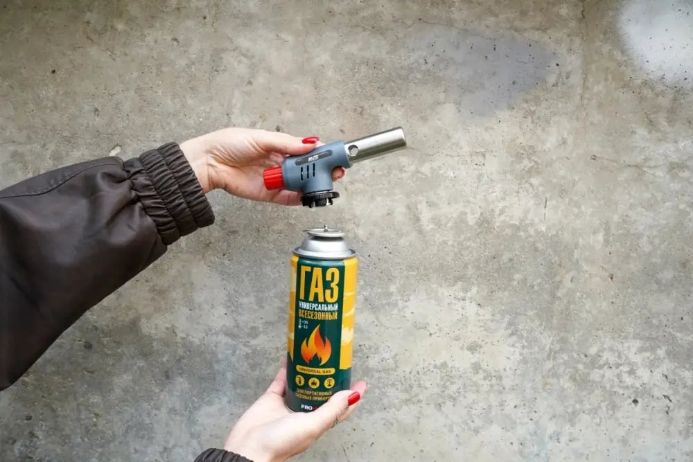 Плотно присоедините горелку к газовому баллону. Отрегулируйте подачу газа с помощью крана. Затем нажмите на кран. После окончания работы поверните кран по часовой стрелке до упора и отсоедините баллон. Храните в недоступном для детей месте.