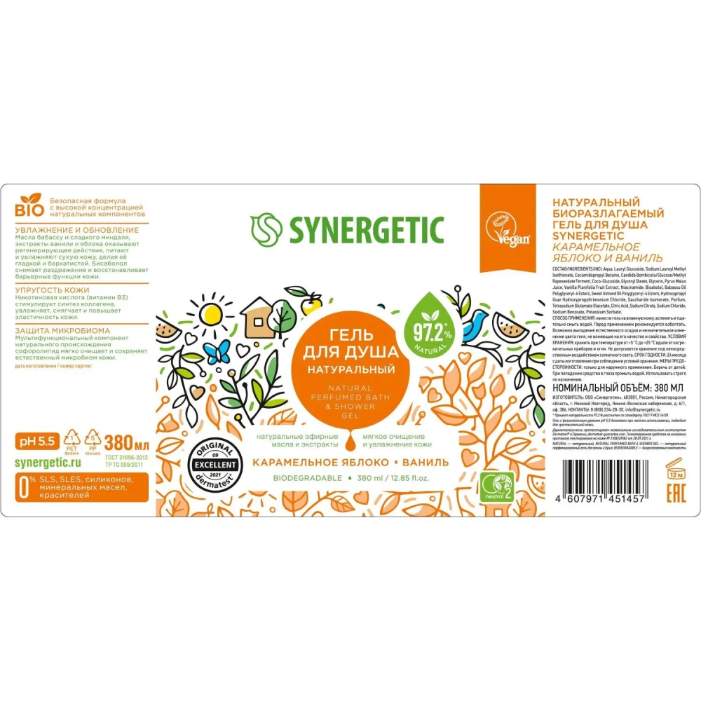 Гель для душа SYNERGETIC карамельное яблоко и ваниль натуральный 380мл