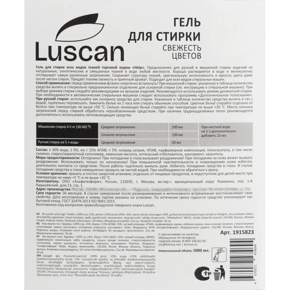 Гель для стирки Luscan Свежесть цветов 5л