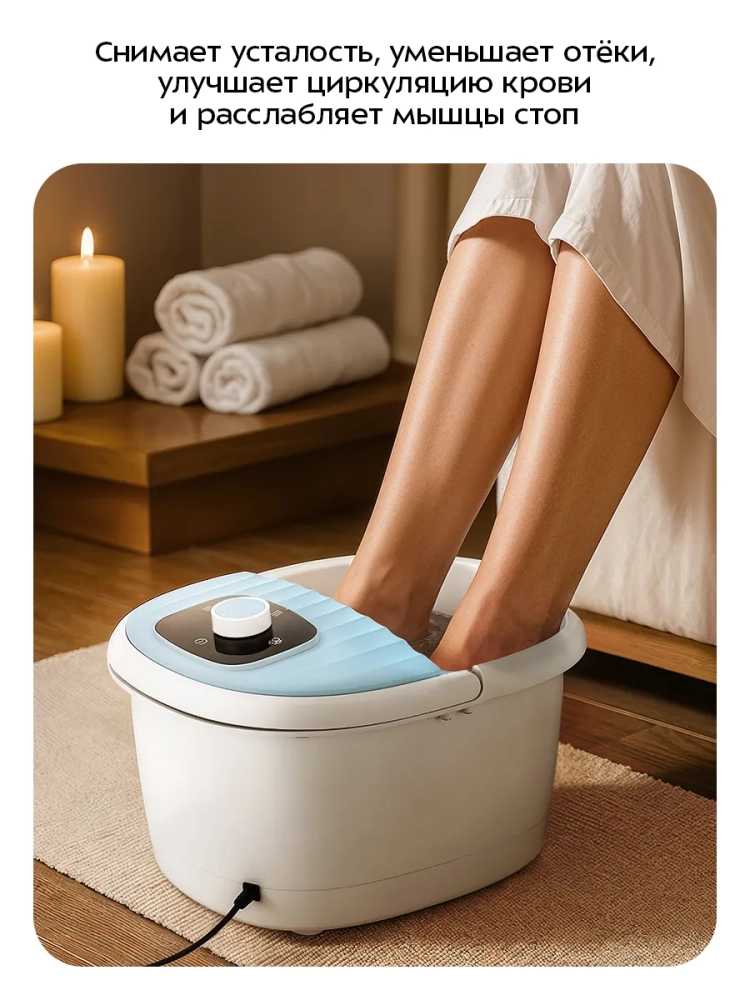 Гидромассажная ванна для ног имеет три режима работы: «Пузырьковый массаж», «Нагрев» и «Пузырьковый массаж и нагрев», что поможет вам подобрать наиболее комфортный и приятный гидромассаж.