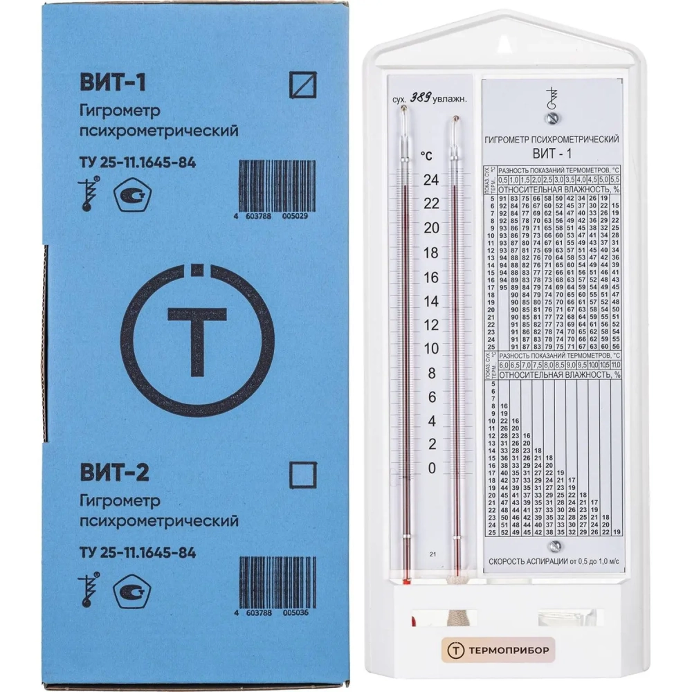 Гигрометр психрометрический ВИТ-1, Термоприбор (0-25С), с поверкой РФ